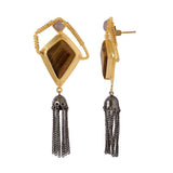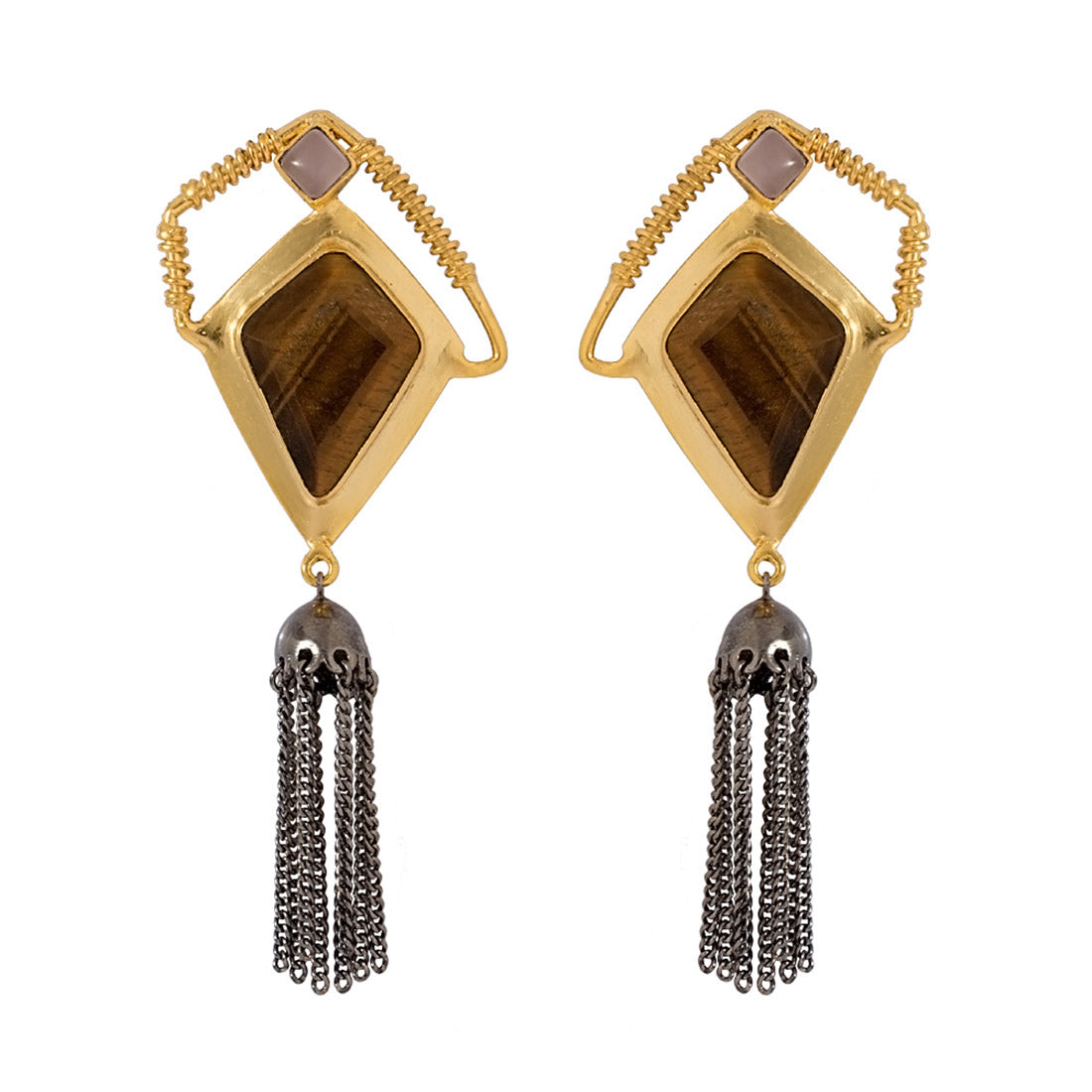 Adorned with ravishing tiger's eye and rose stone, this pair of gold-plated earrings is a must-have for all women. Pair these earrings with your ethnics or party attires to get a unique look.