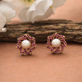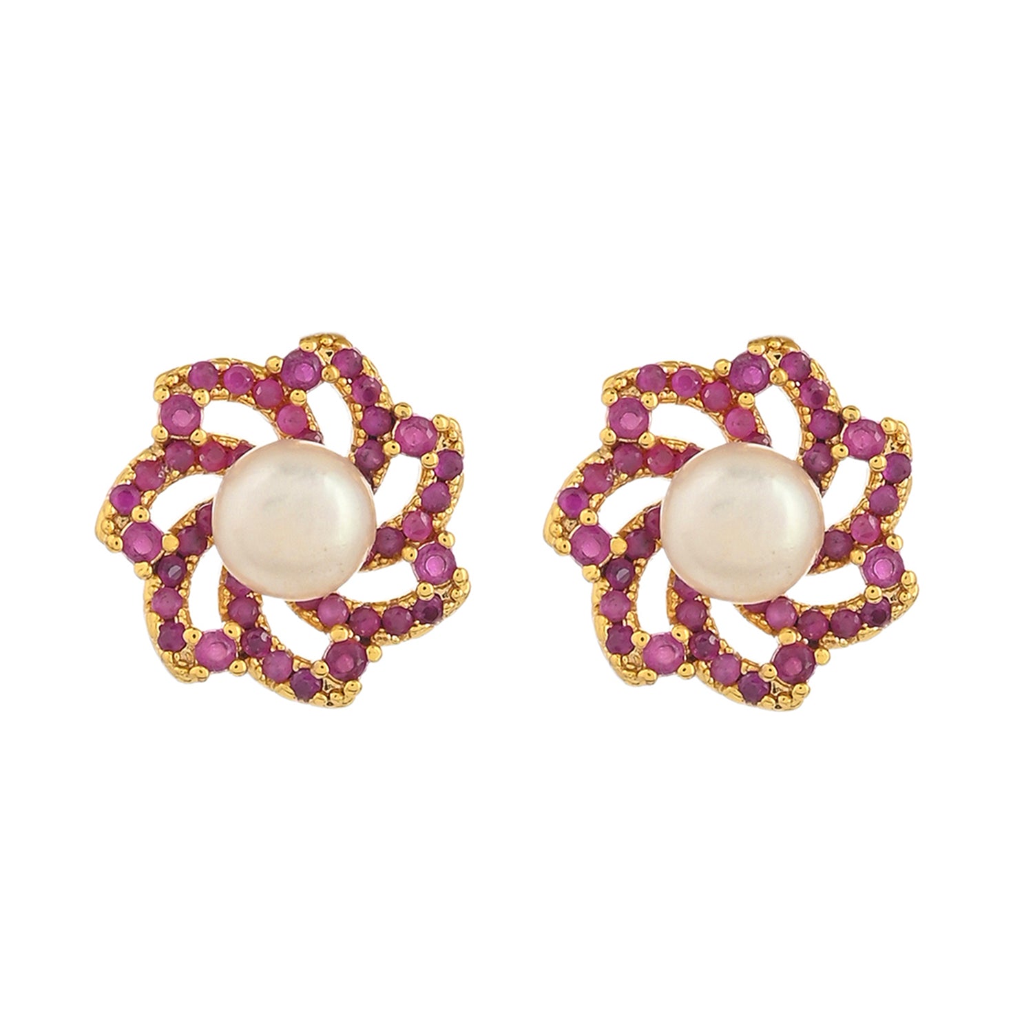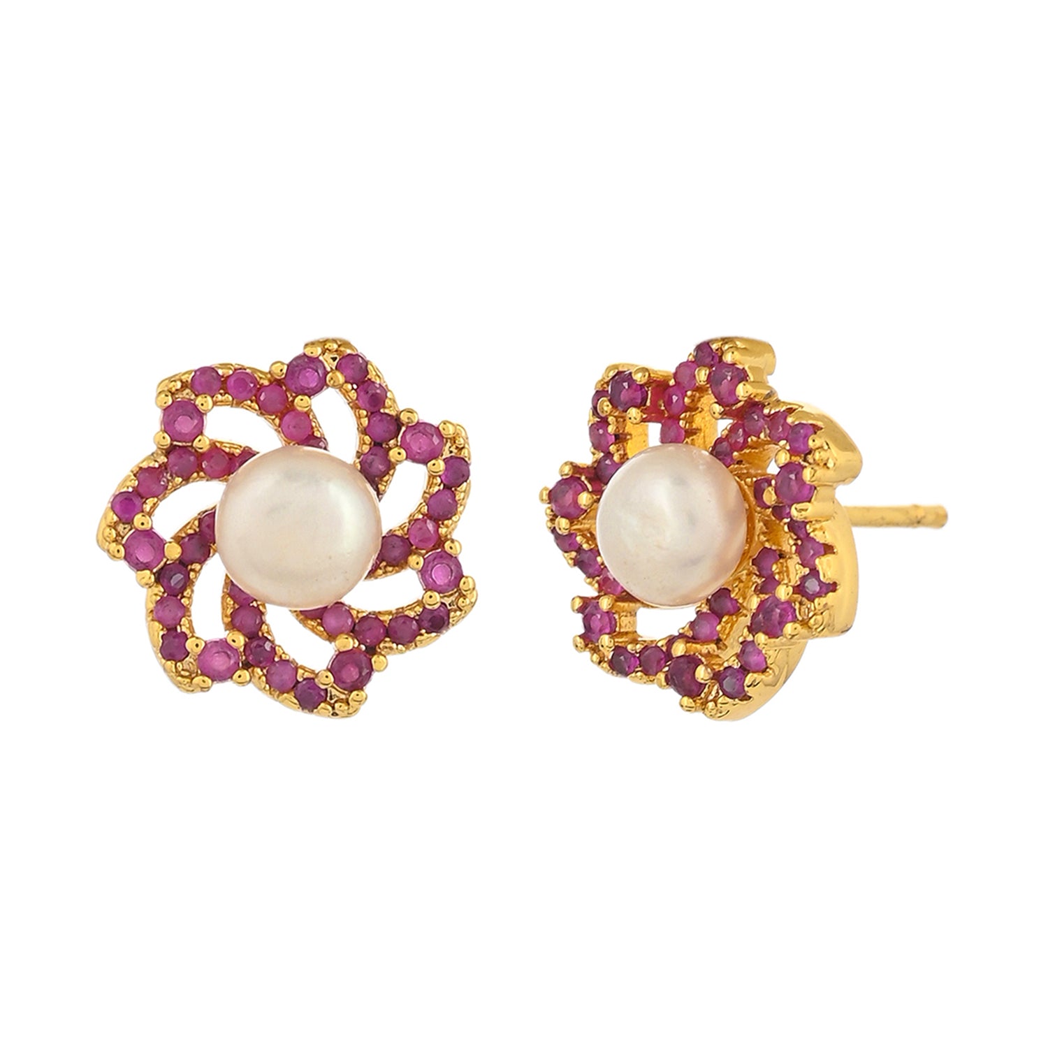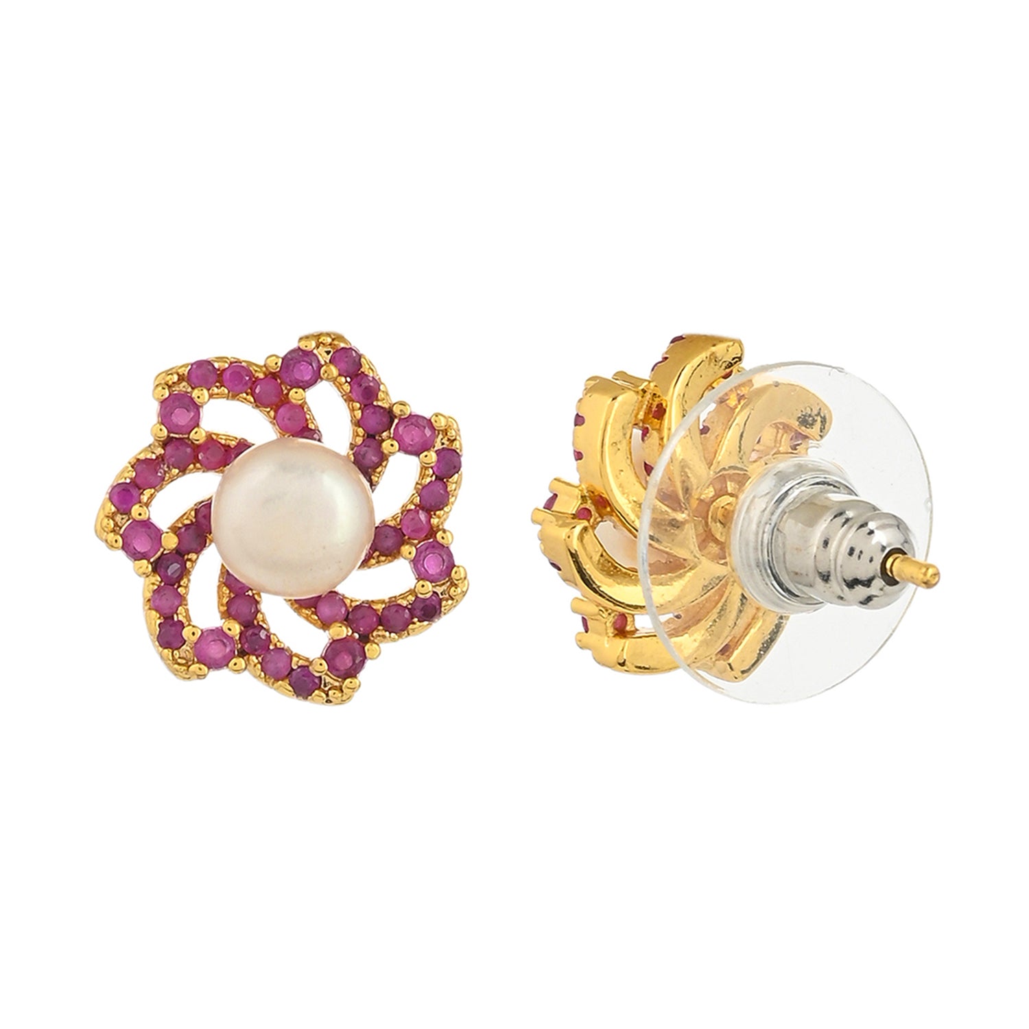 Gold Plated Faux Pearls and CZ Adorned Brass Stud Earrings