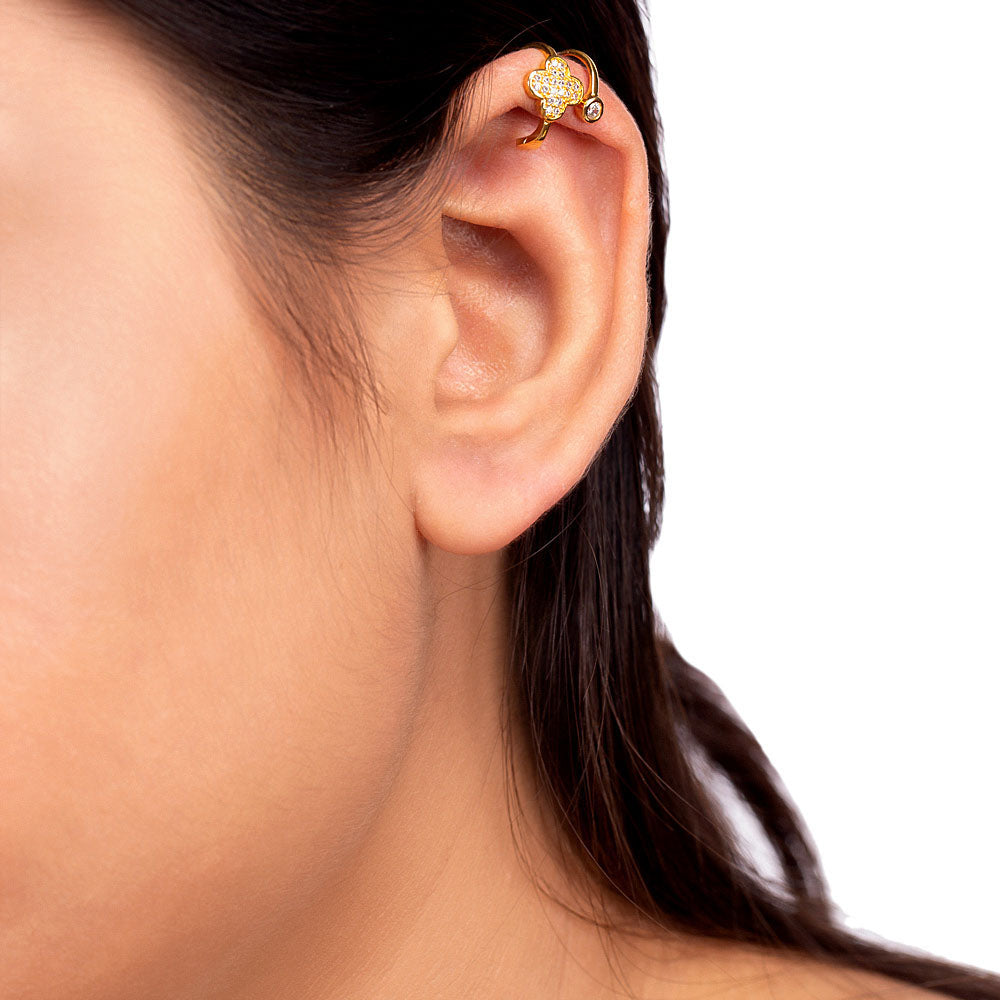 Floral motif earrings made from brass. Yellow gold plated and zircons embellished. Pair with an ethnic skirt.