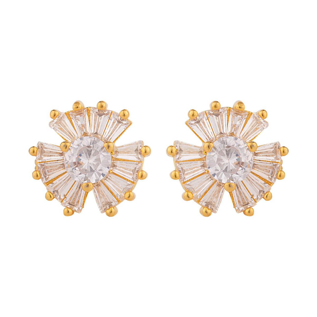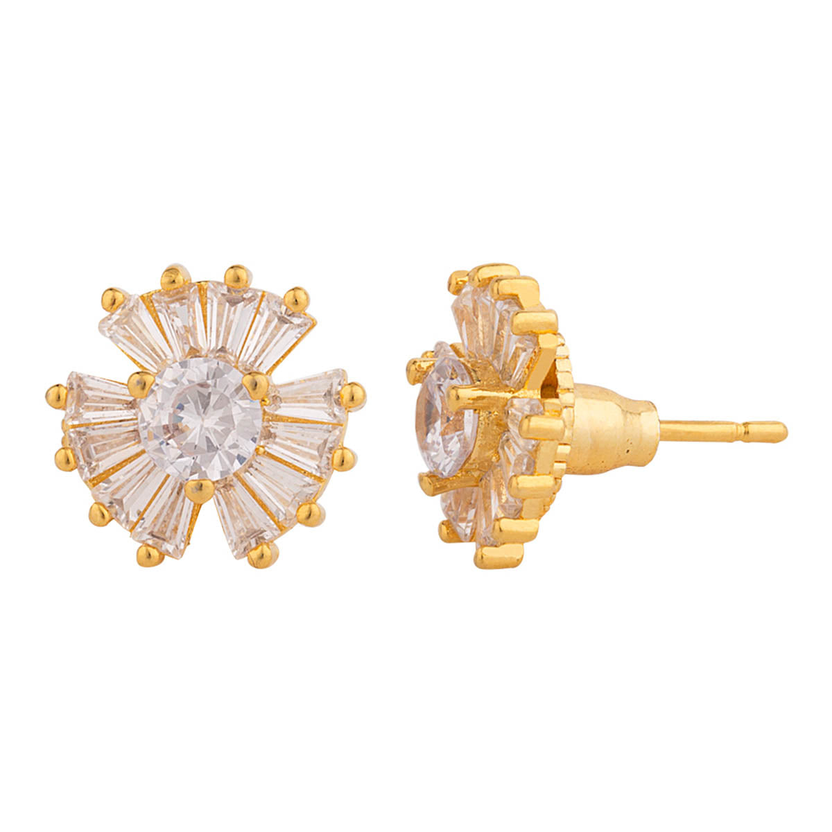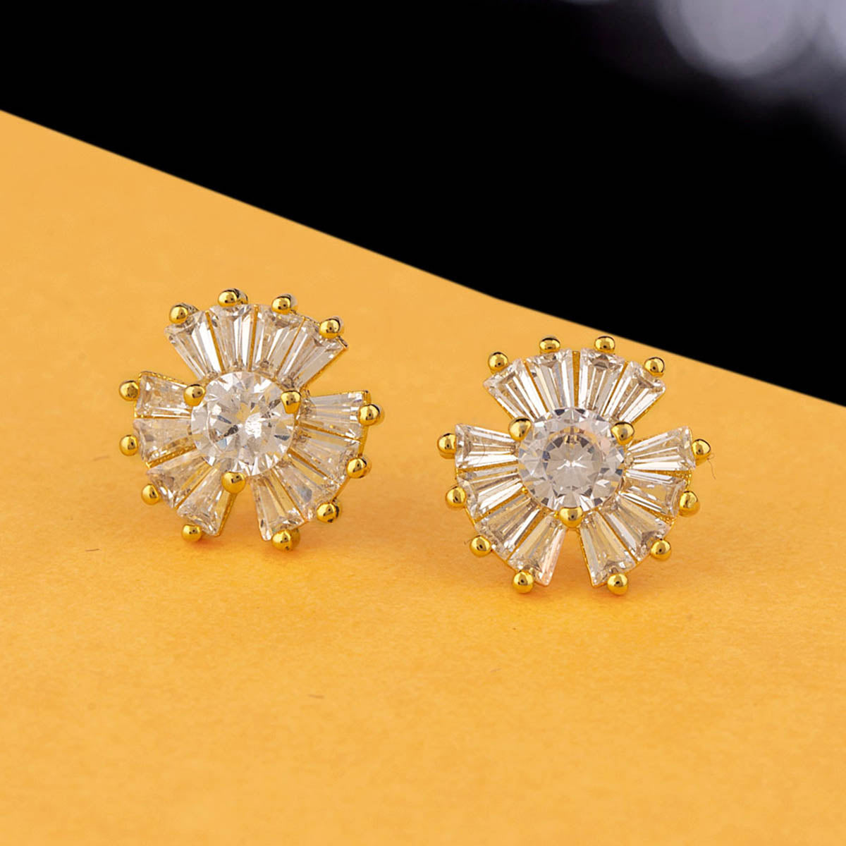 Yellow gold plated stud style earrings with gemstones. Wear the brass pair with a cocktail dress.