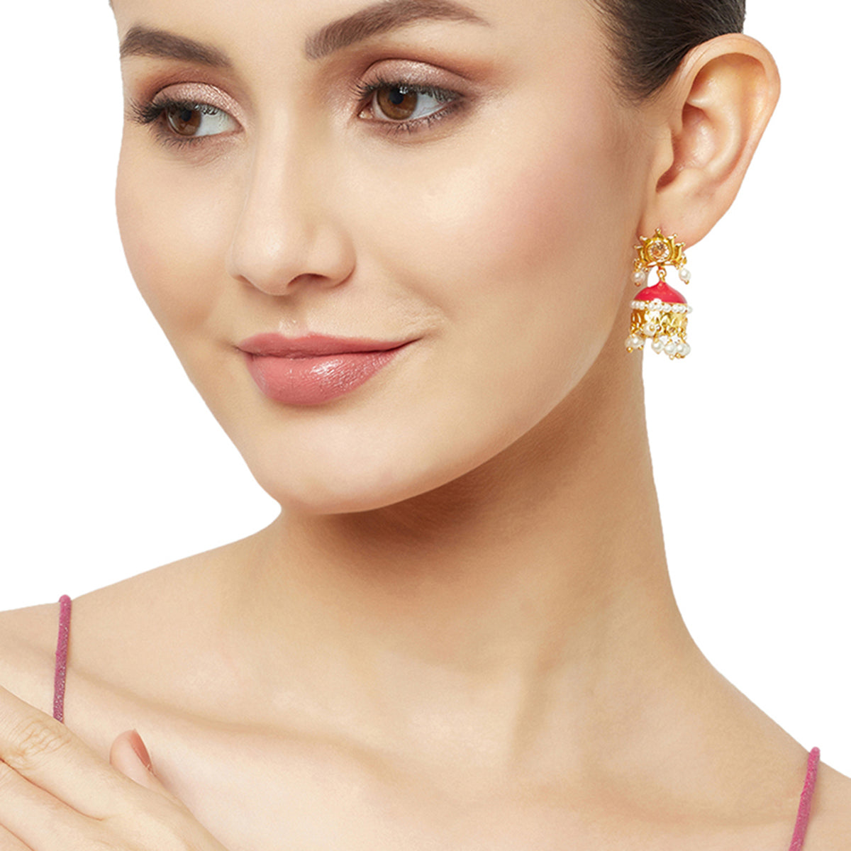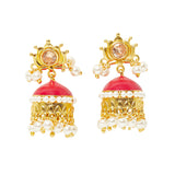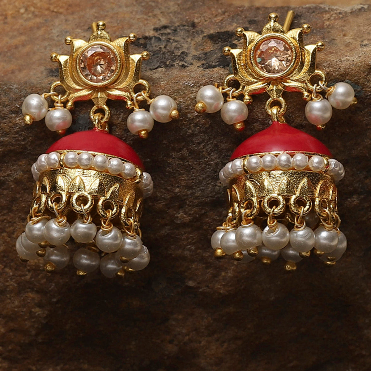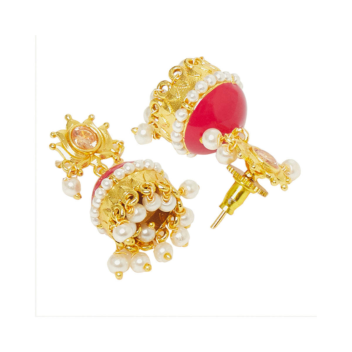 Get this marvelous pair of yellow gold plated beautifully designed earrings featuring pearl beads.