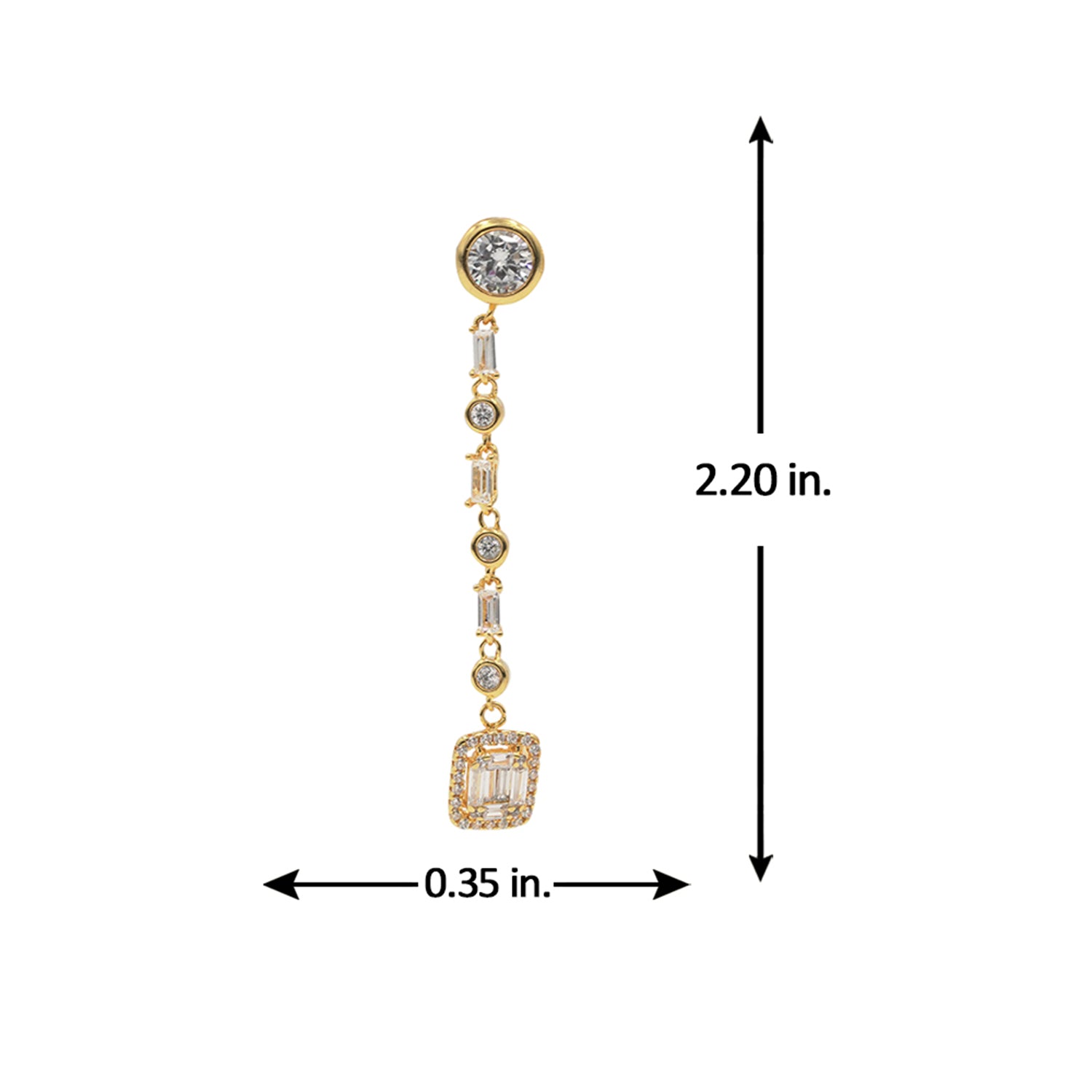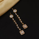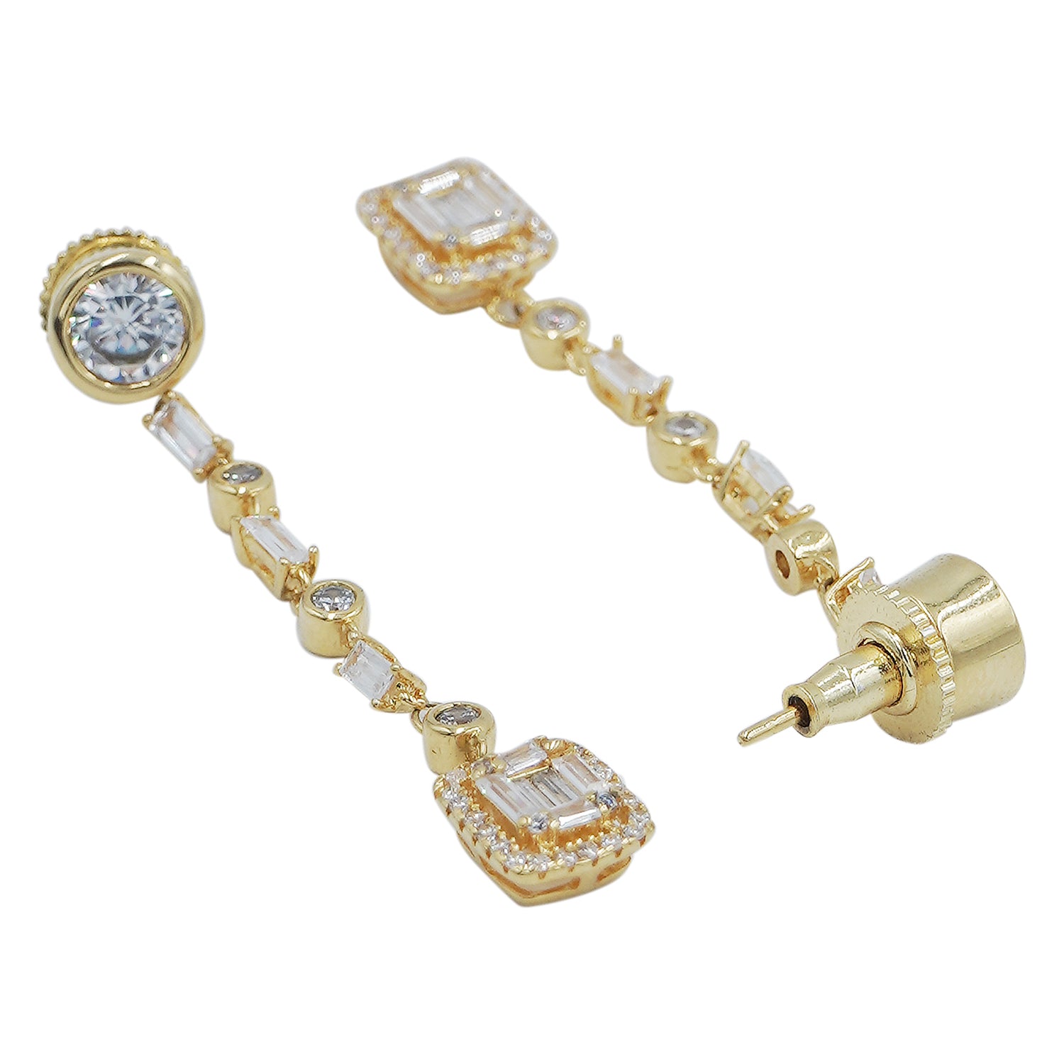 When you want your natural beauty to glow, simplicity is the way to go! These long pair of earrings are simple and luxurious that highlight the beauty in you. The high-quality American Diamond stones and gold plating add the right balance of sophistication to these gorgeous danglers.