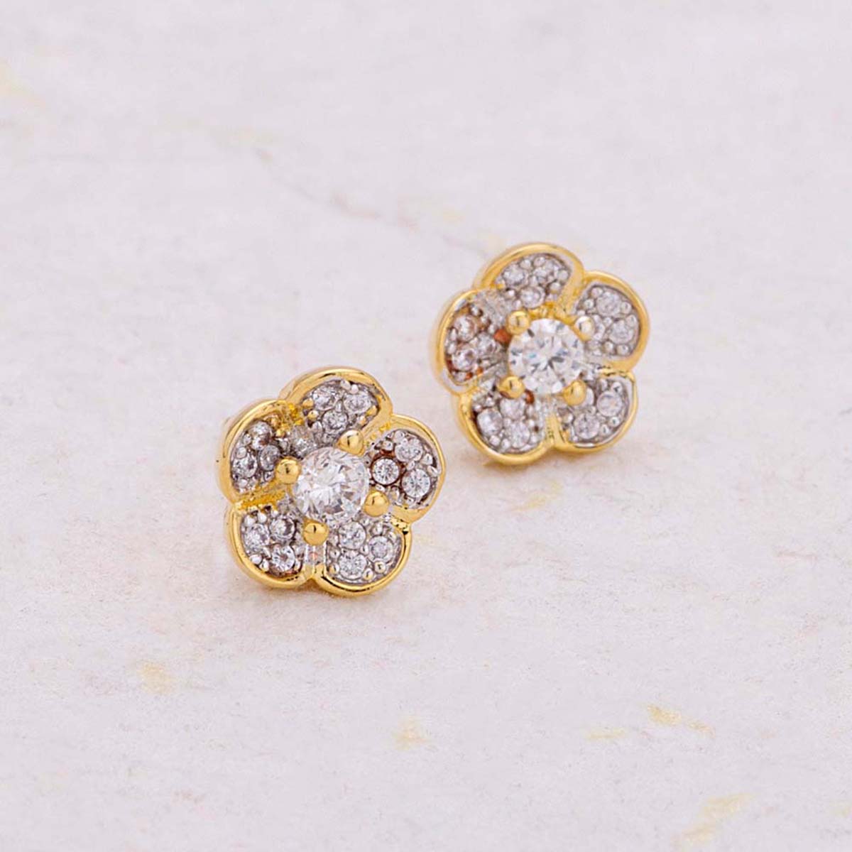 Jazz it up with this lovely pair of flower studs. Delicately designed and encrusted with CZs, this dainty pair makes a fantastic impression. Pair it with your favorite cocktail dress and get ready to roll some heads.