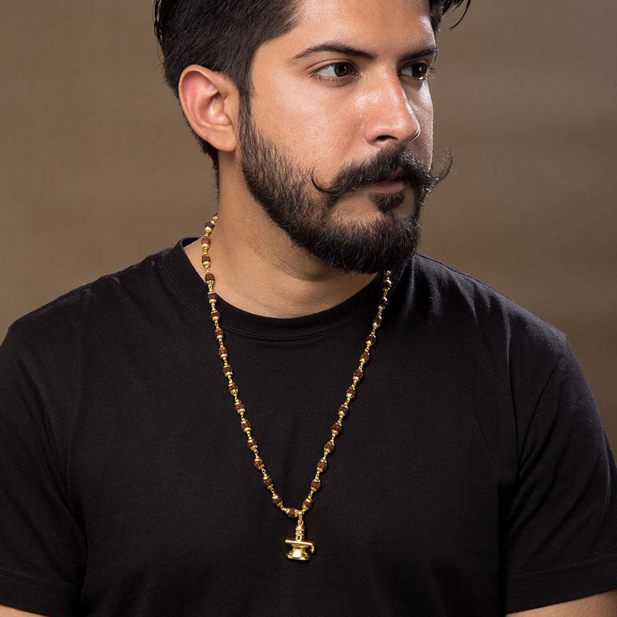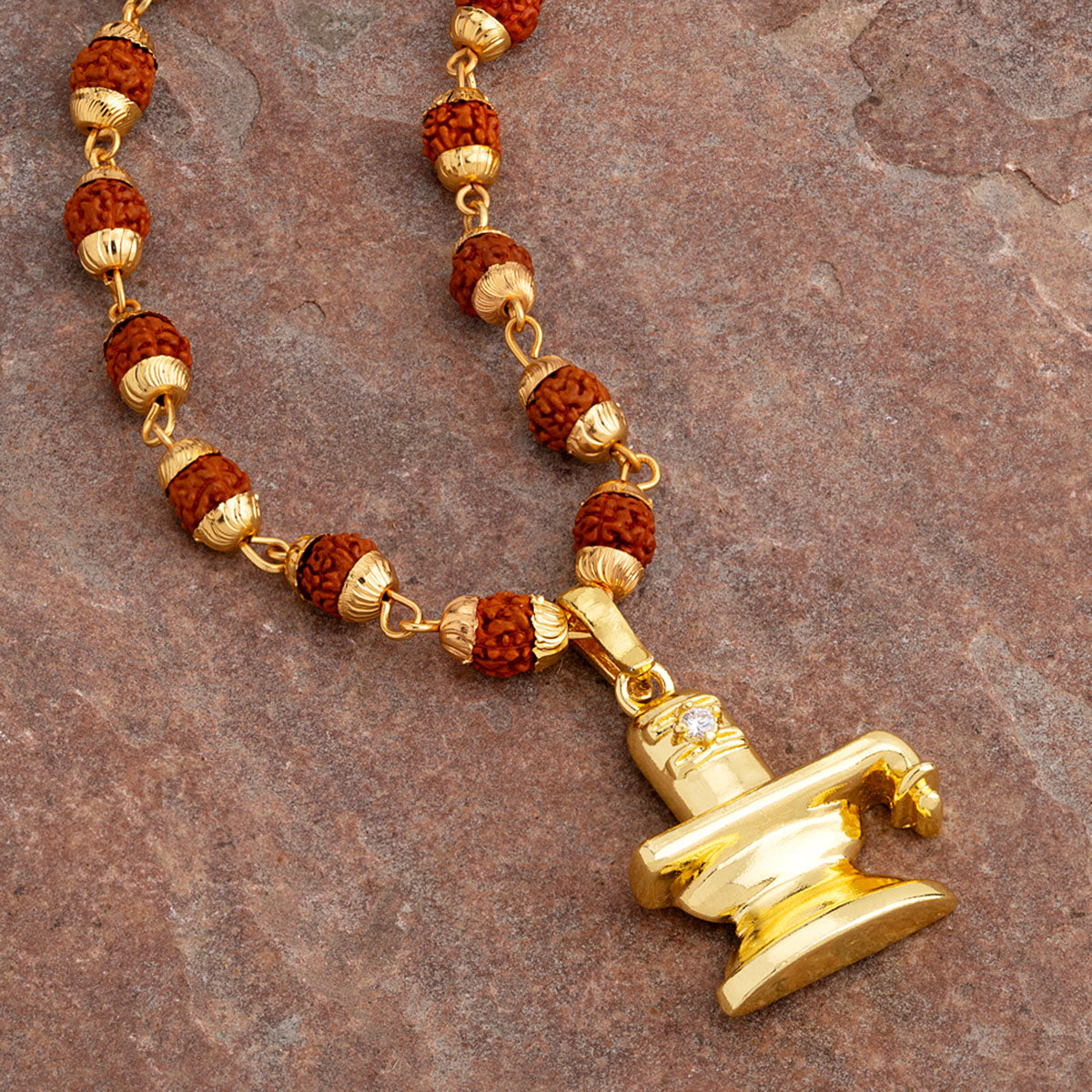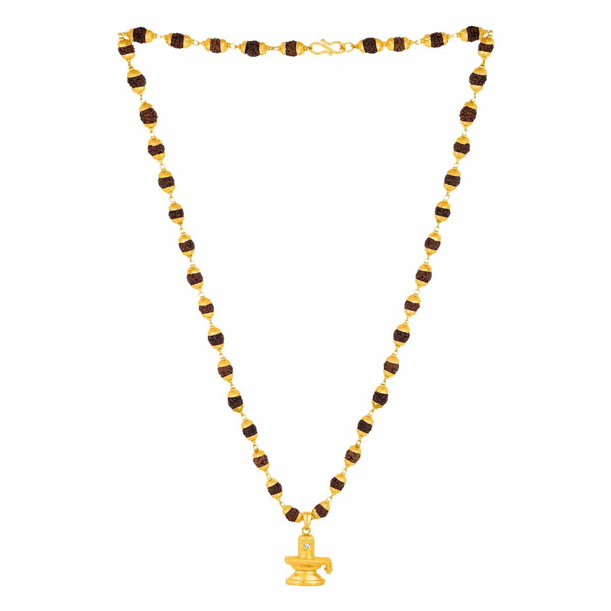 Gold-Plated Mahadev Shivlinga Rudraksha Beaded Necklace