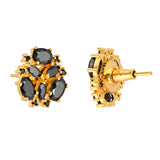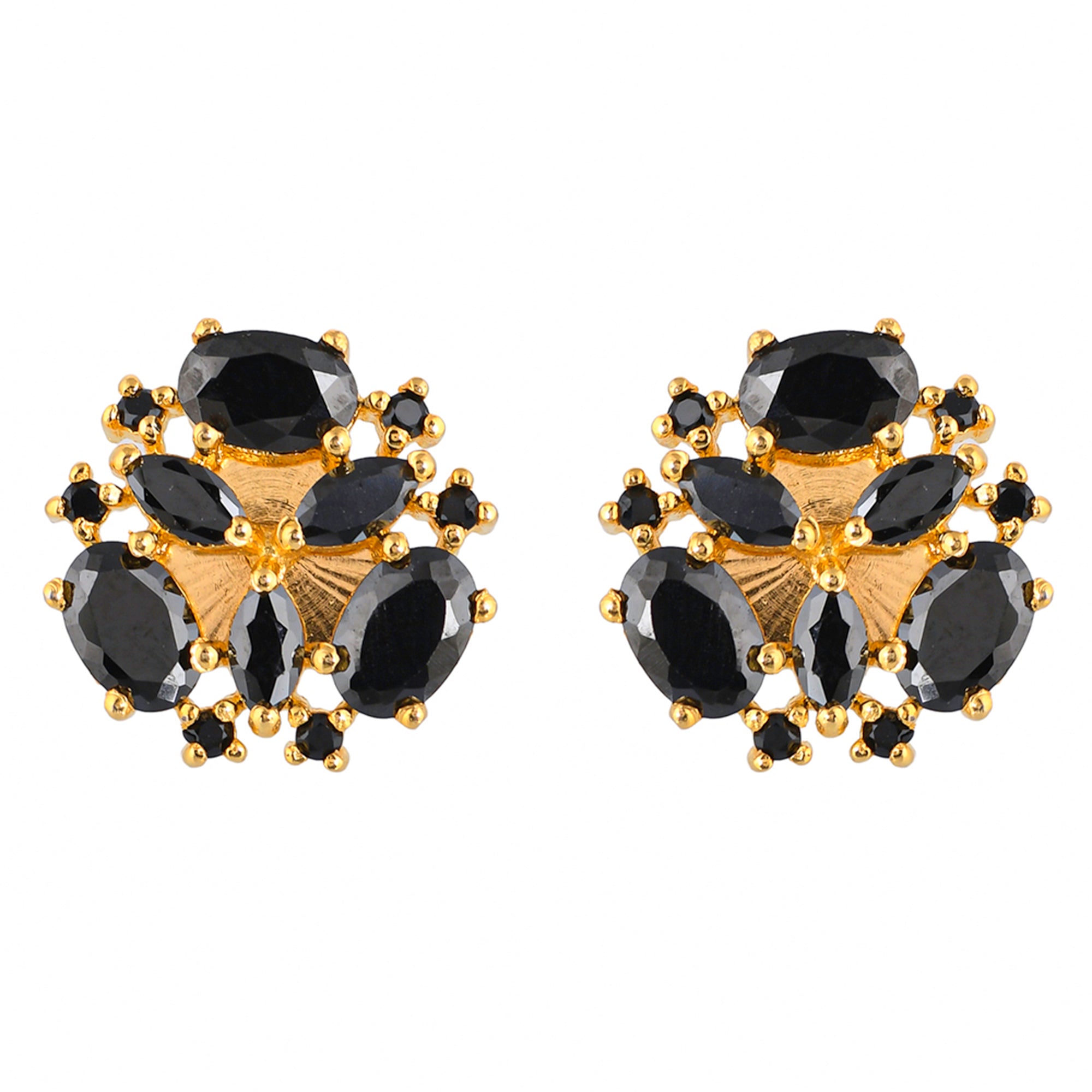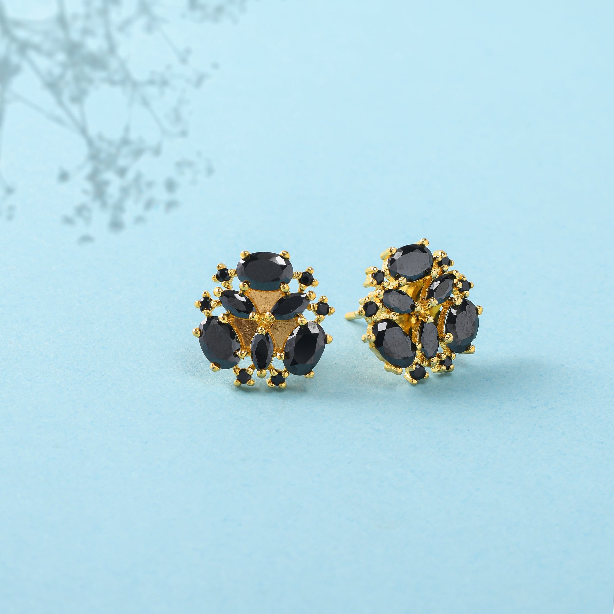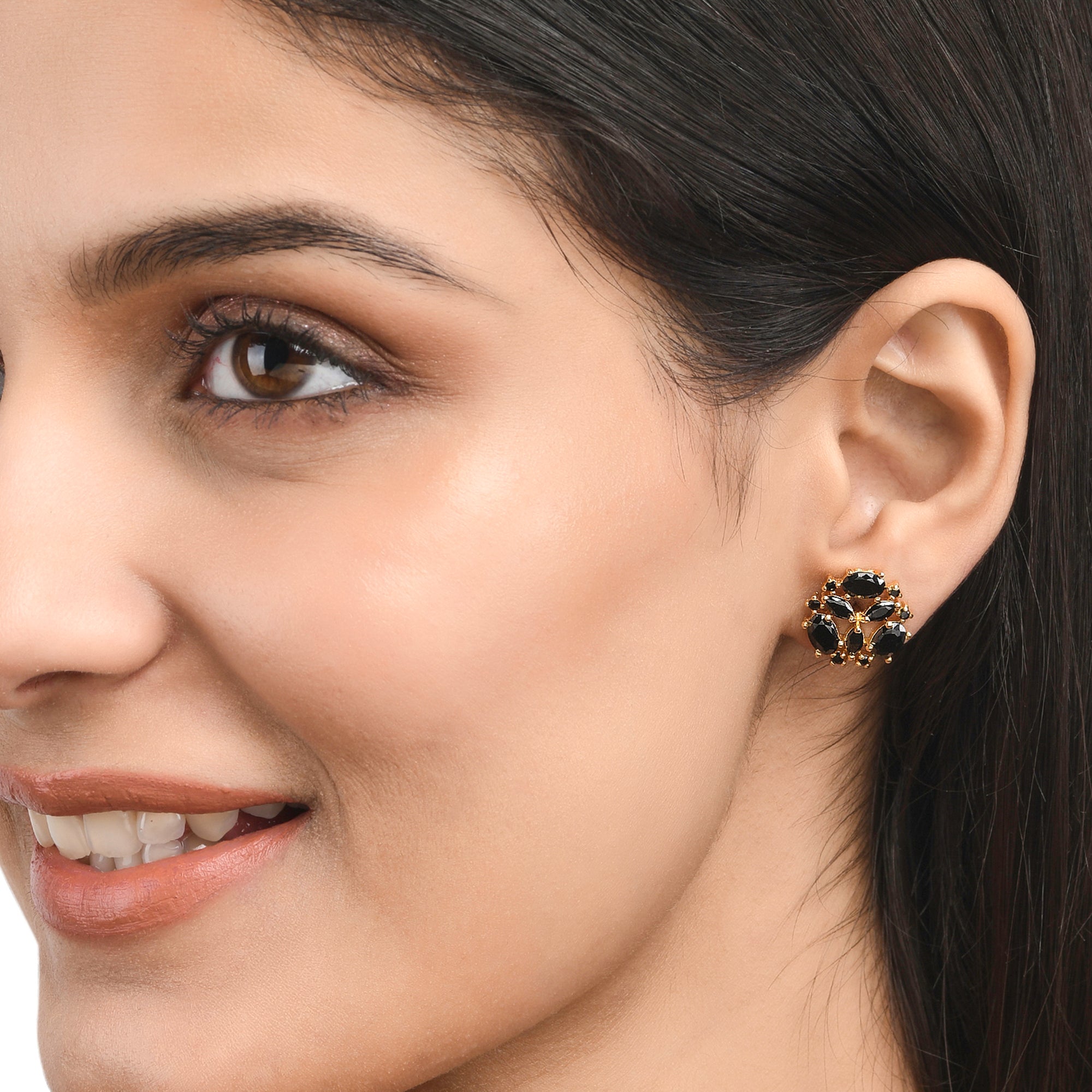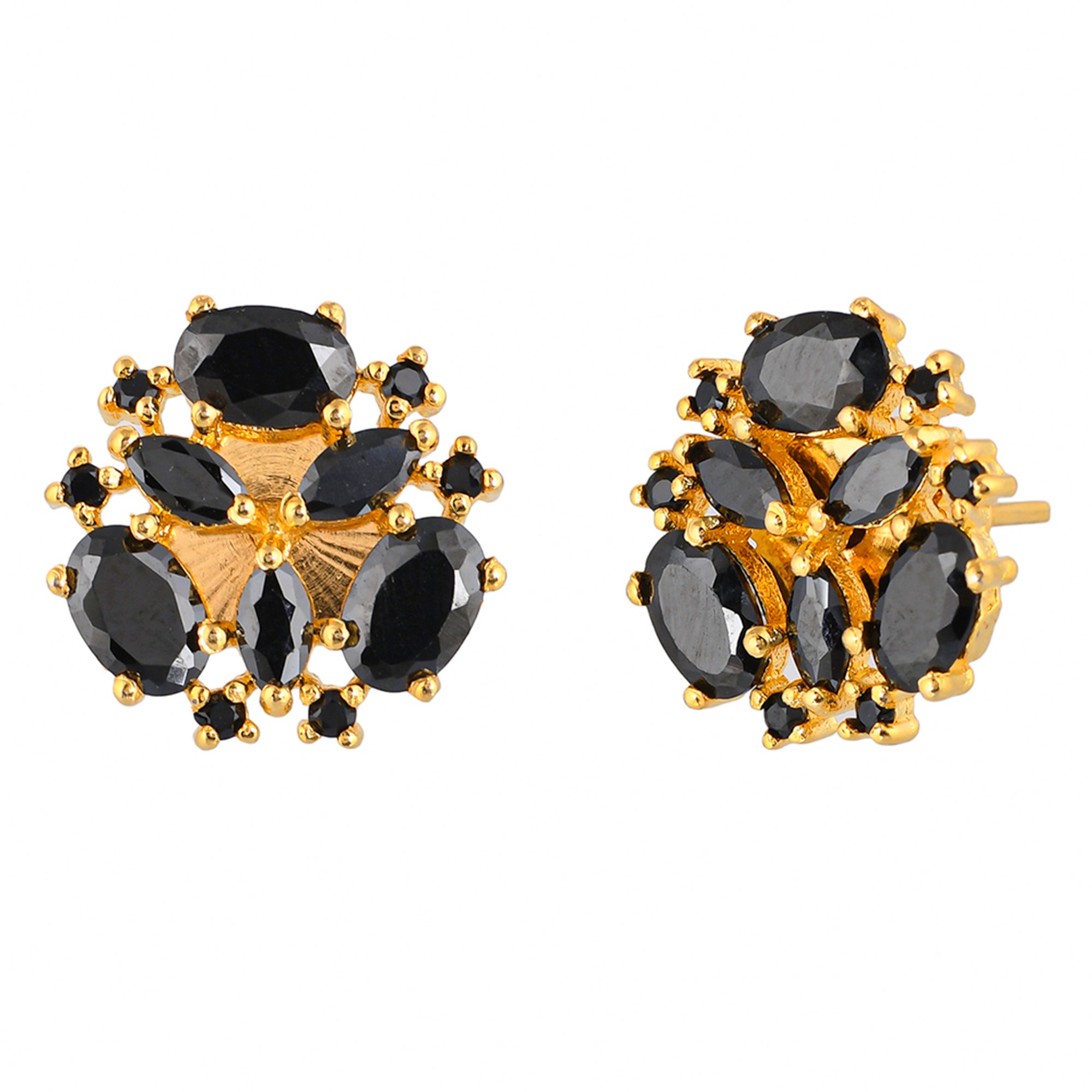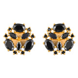 Gold Plated Marquise Cut Black CZ Stud Earrings