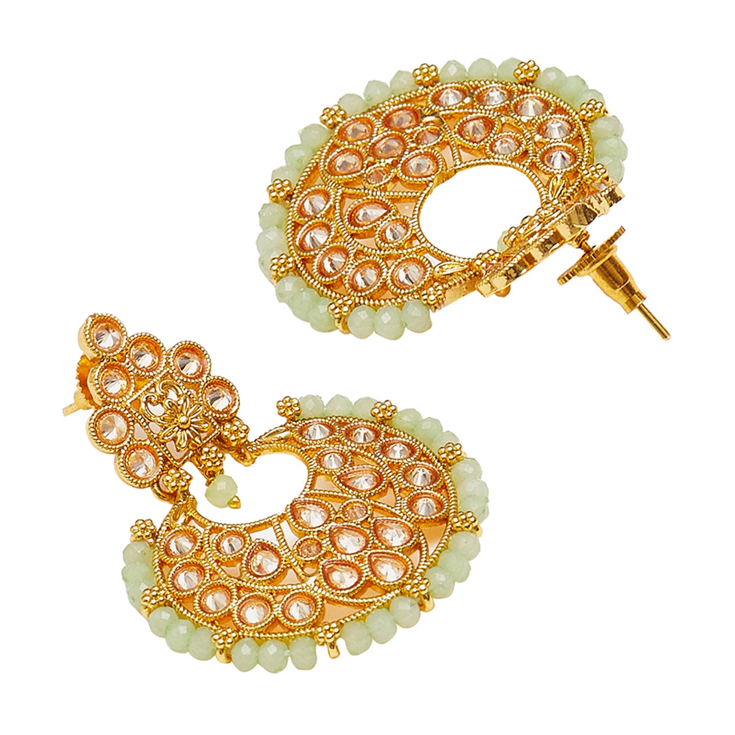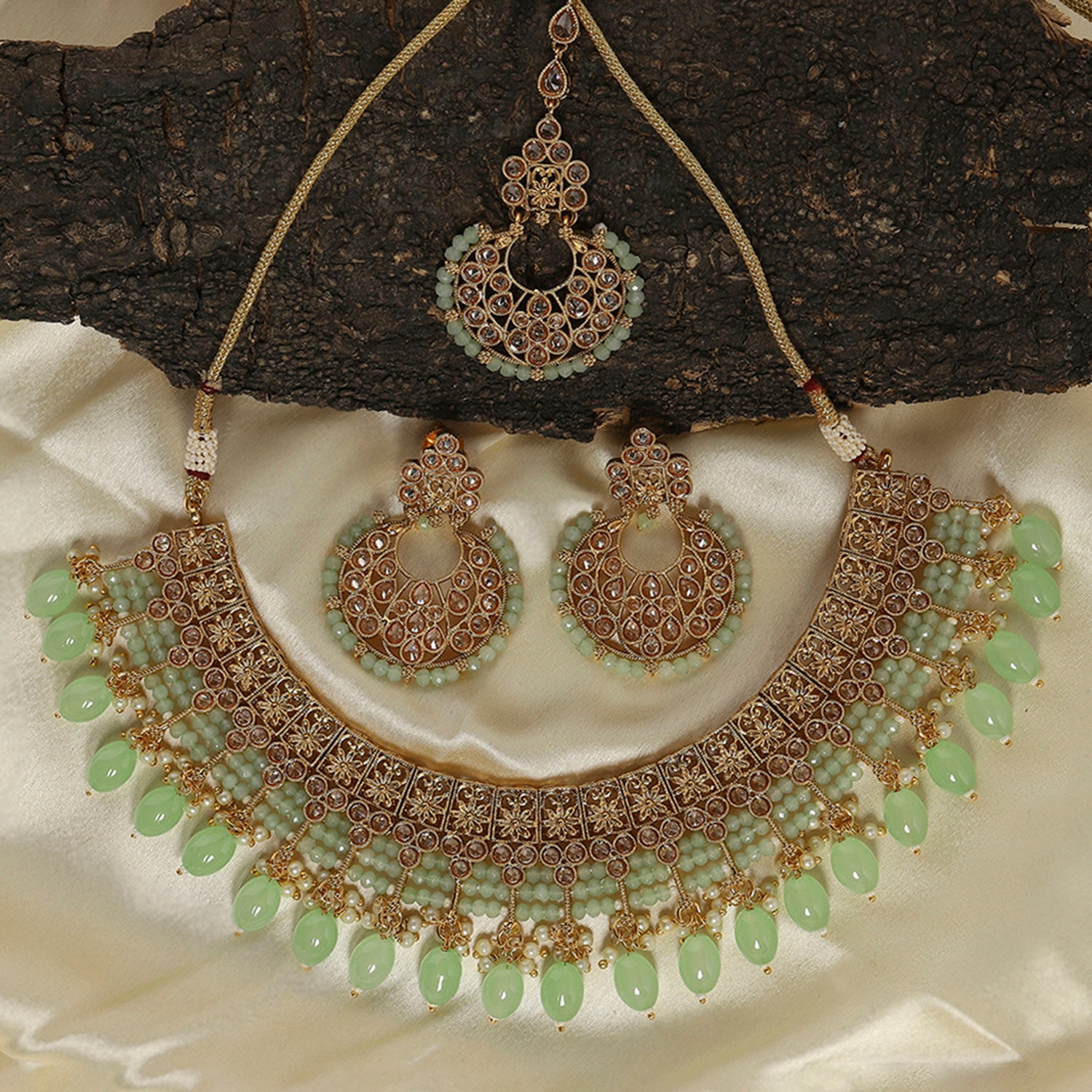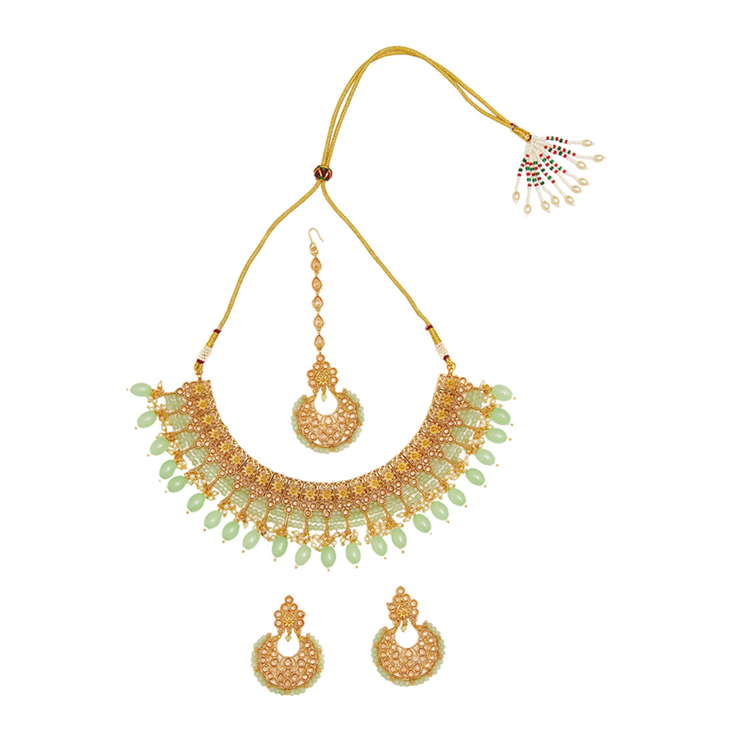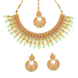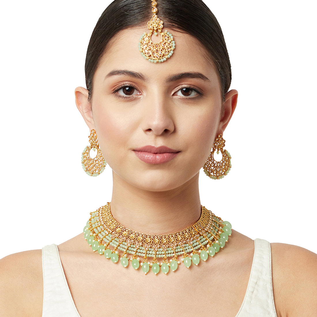 Necklaces are a great way to show your inner beauty! If you are also looking for something extra to beautify your neck line, then this gold plated necklace with earrings and Tika will be an outstanding choice. It is beautifully adorned with mint green gemstones that can be paired with a lot of colors. This is an ideal pick if you are looking for a versatile piece of jewelry. It goes without saying- this is made for a SPECIAL YOU!