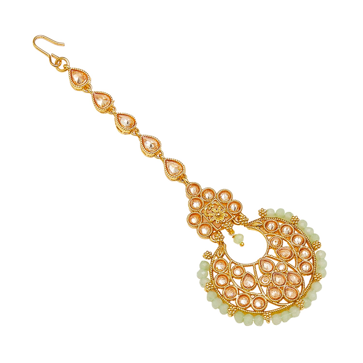 Gold Oppulence Gold Plated Maang Tika Set with Tumble Beads