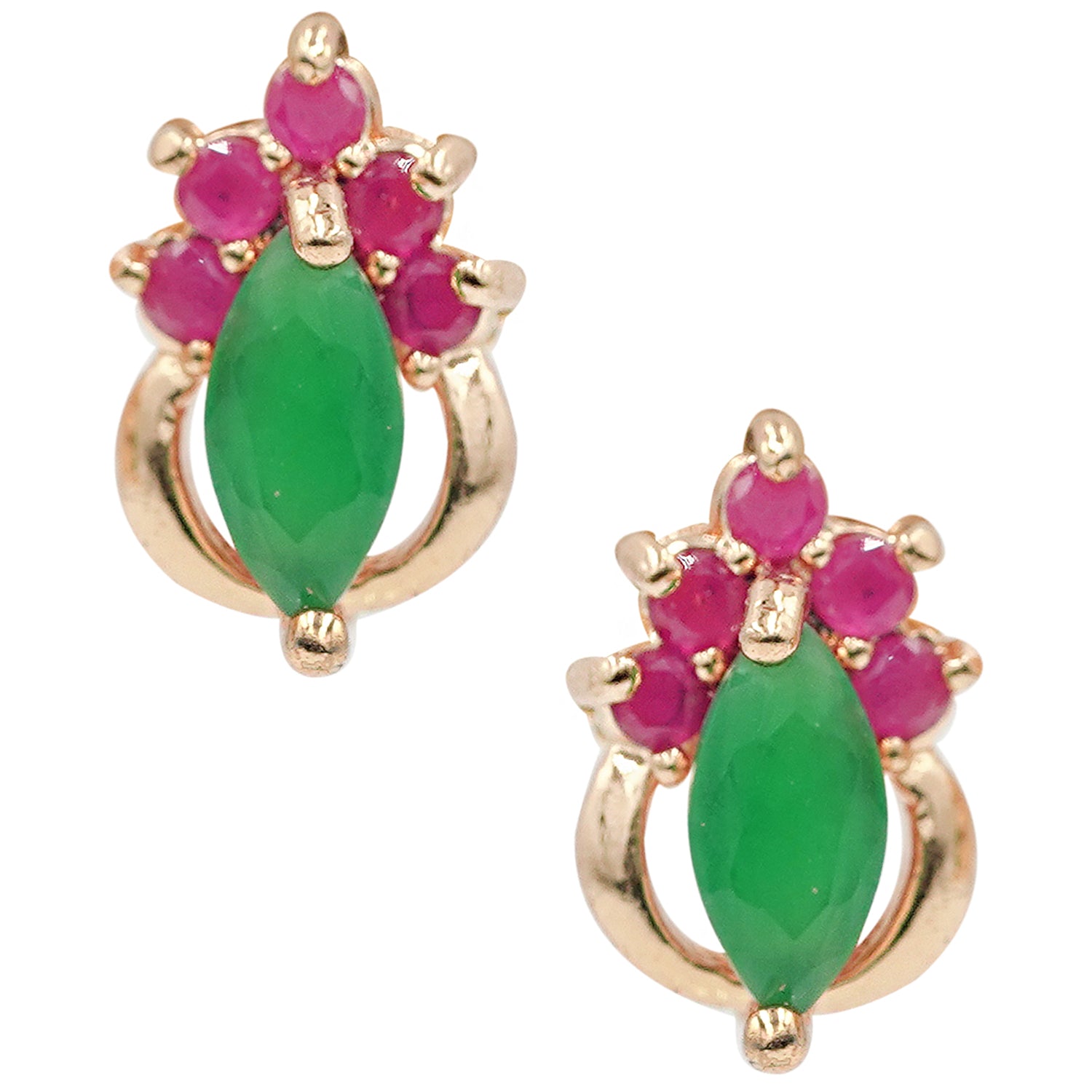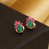 Gold Plated Pink And Green CZ Earrings