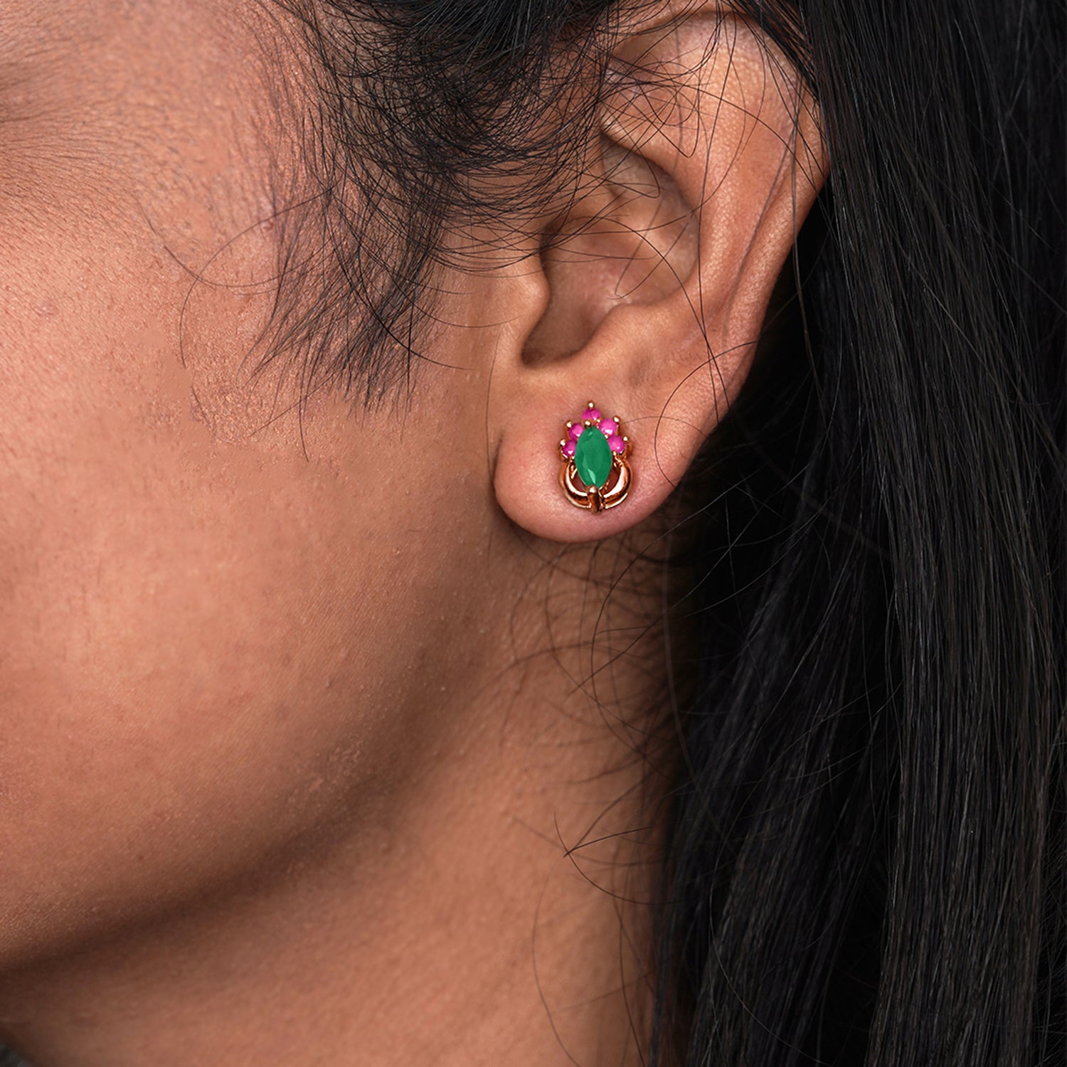 Looking for something traditional? Then these earrings are for you. This jewelry is effortless in design and yet it makes for elegant wear for any occasion. The green faux stone studded jewelry is light on your ears, making it comfortable to wear throughout the day.