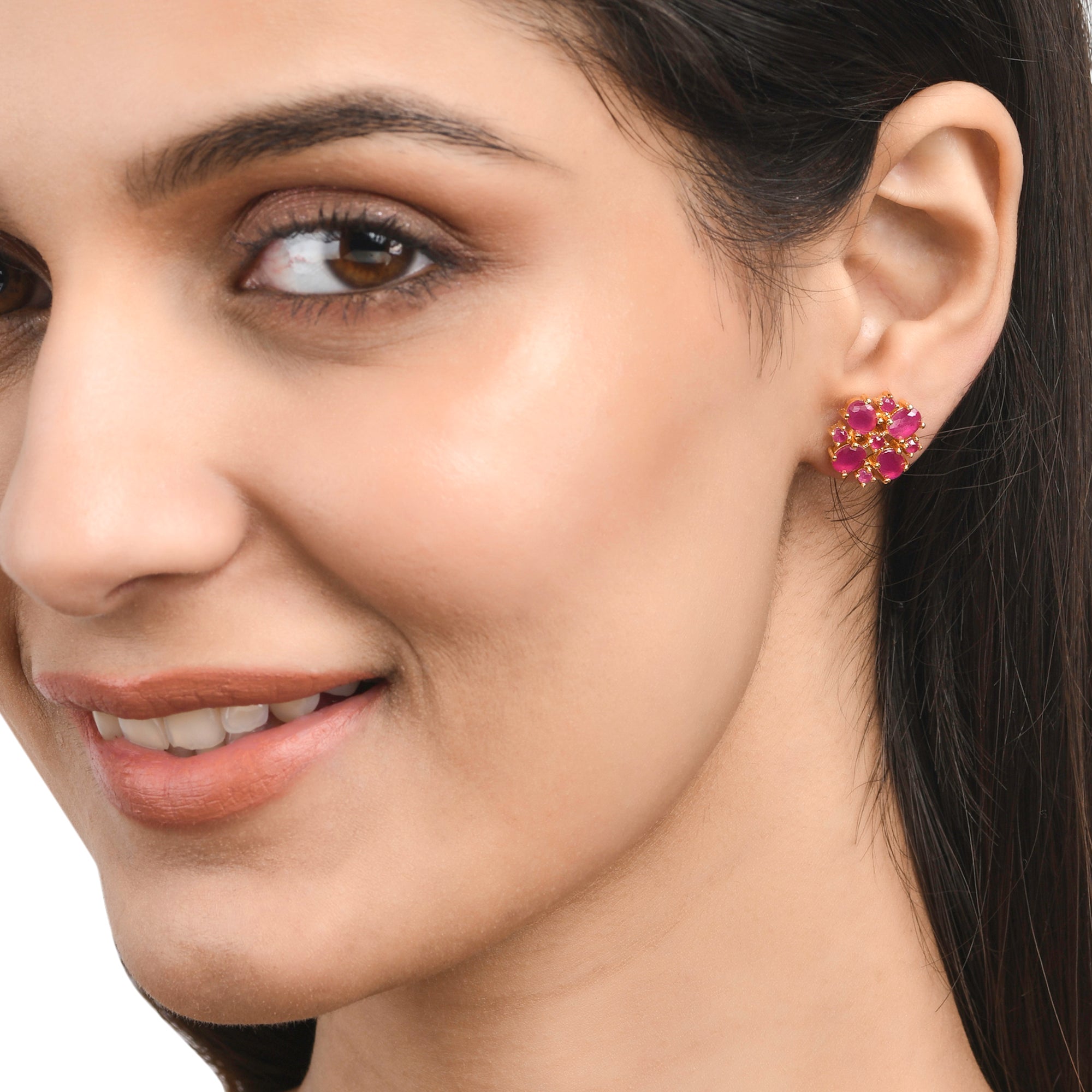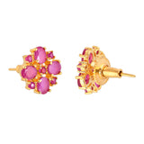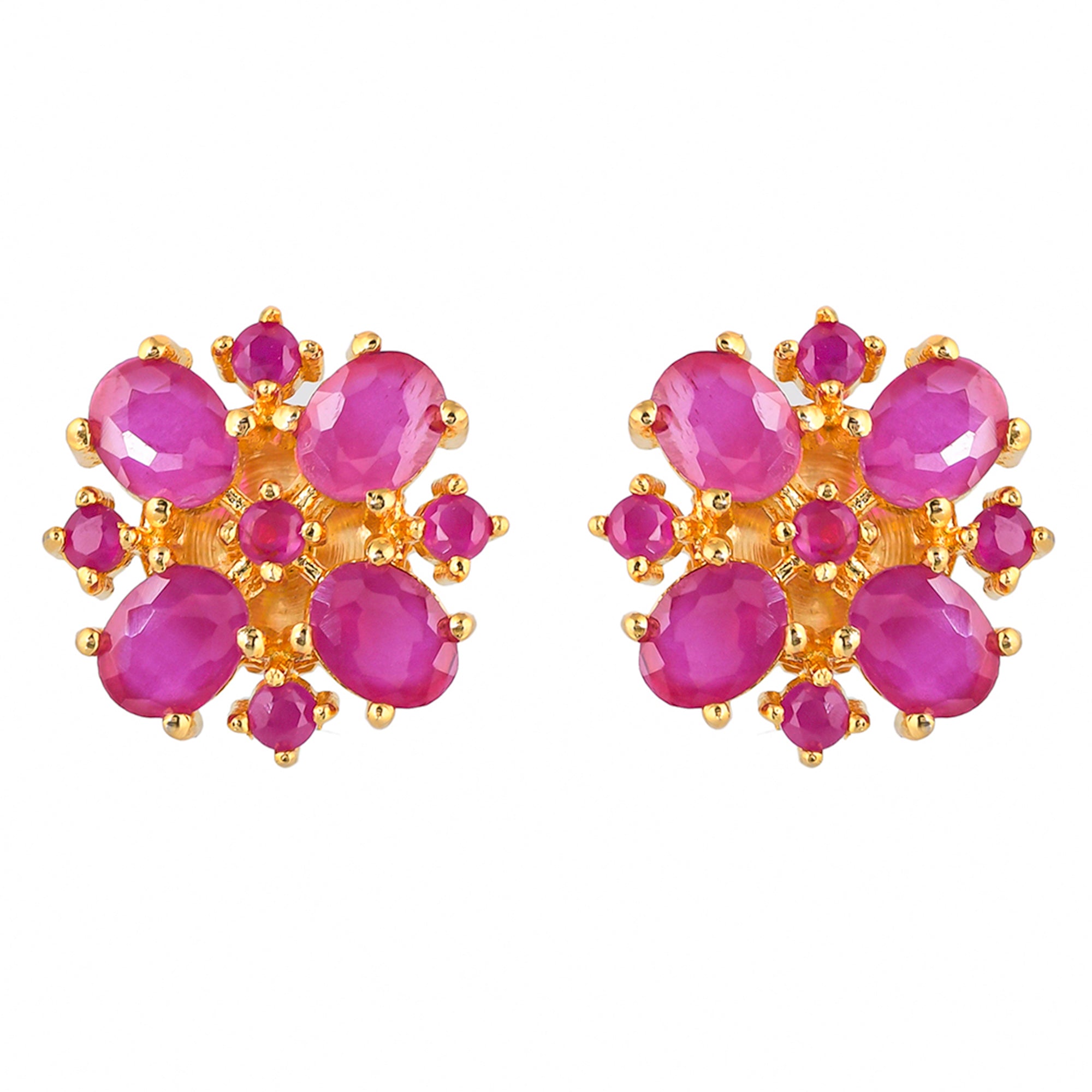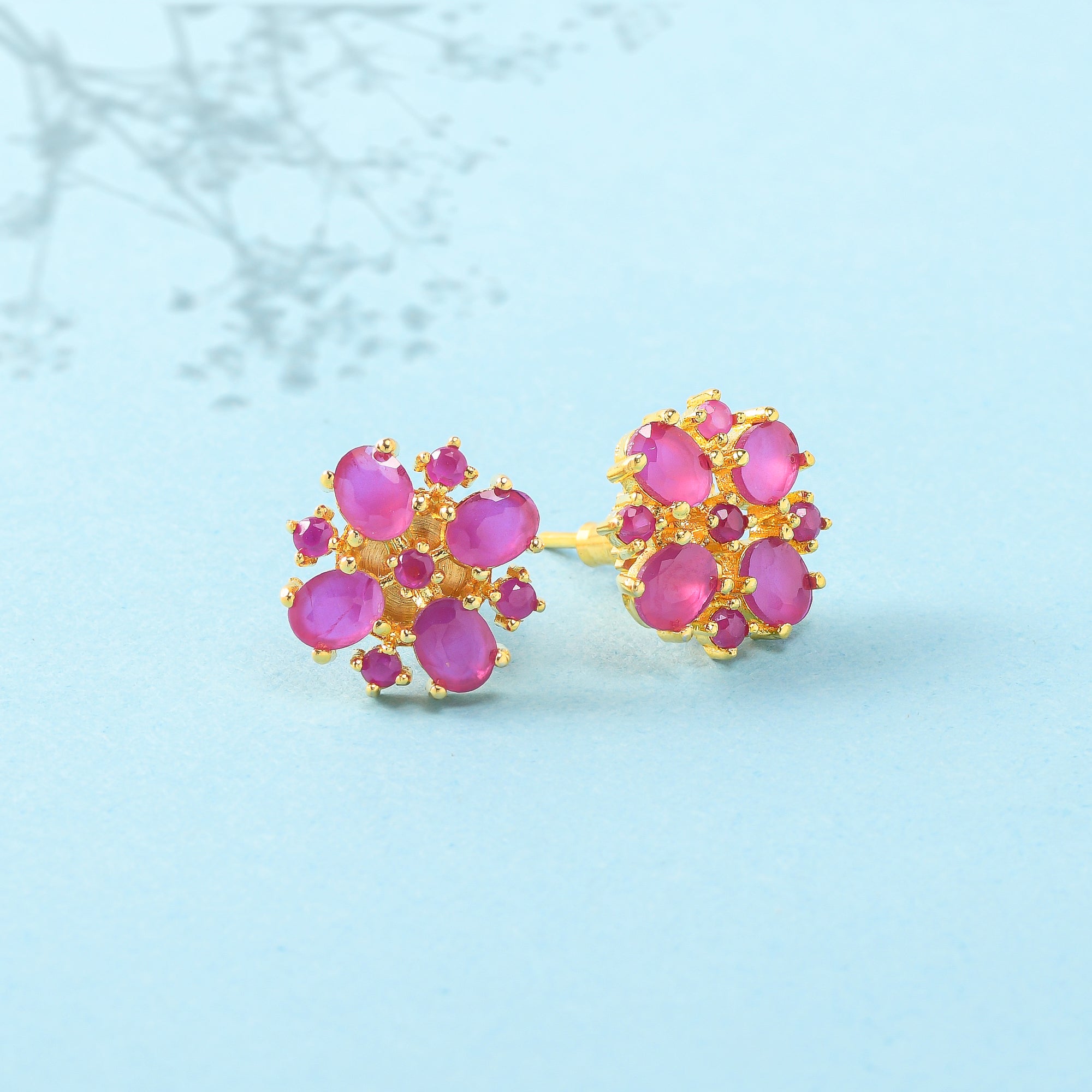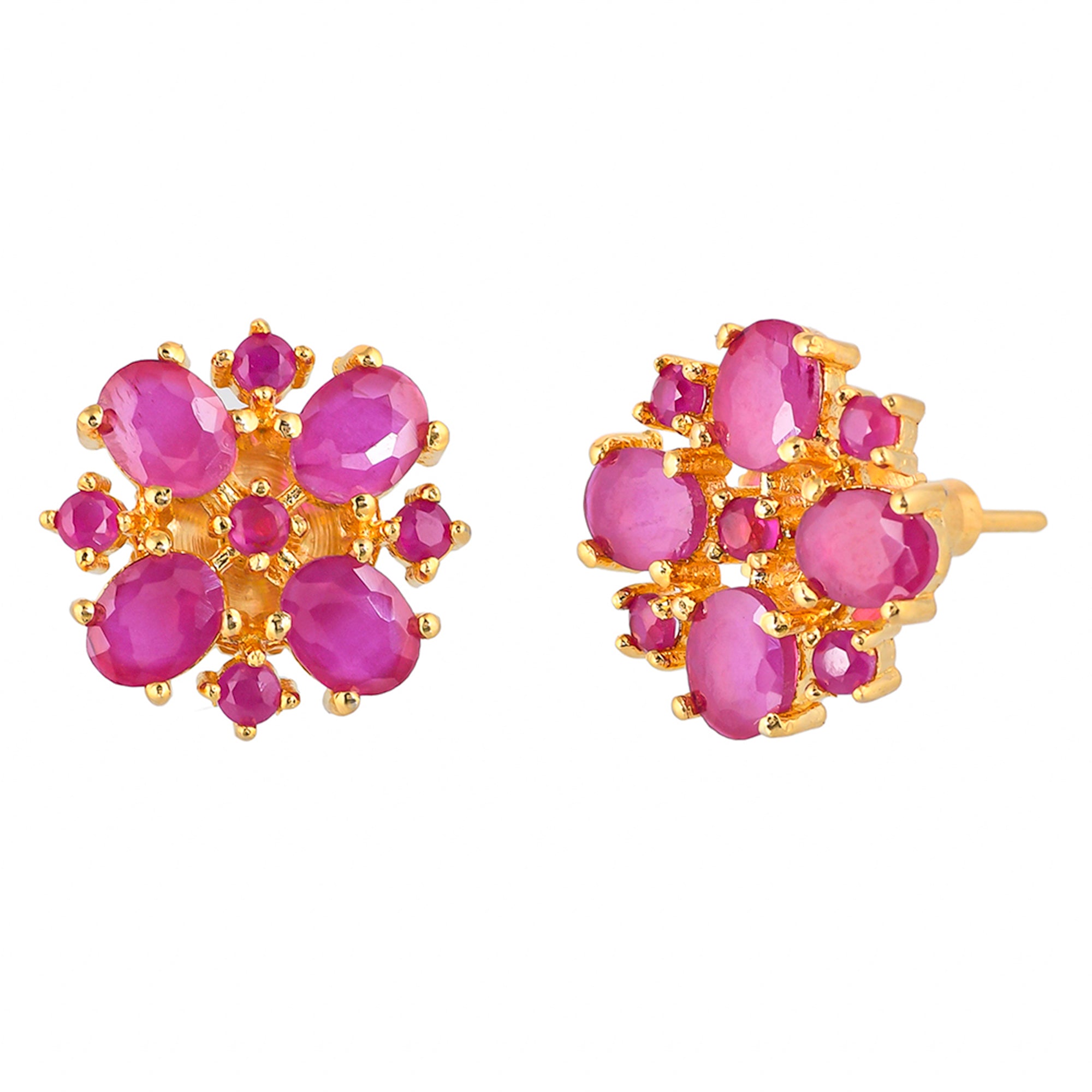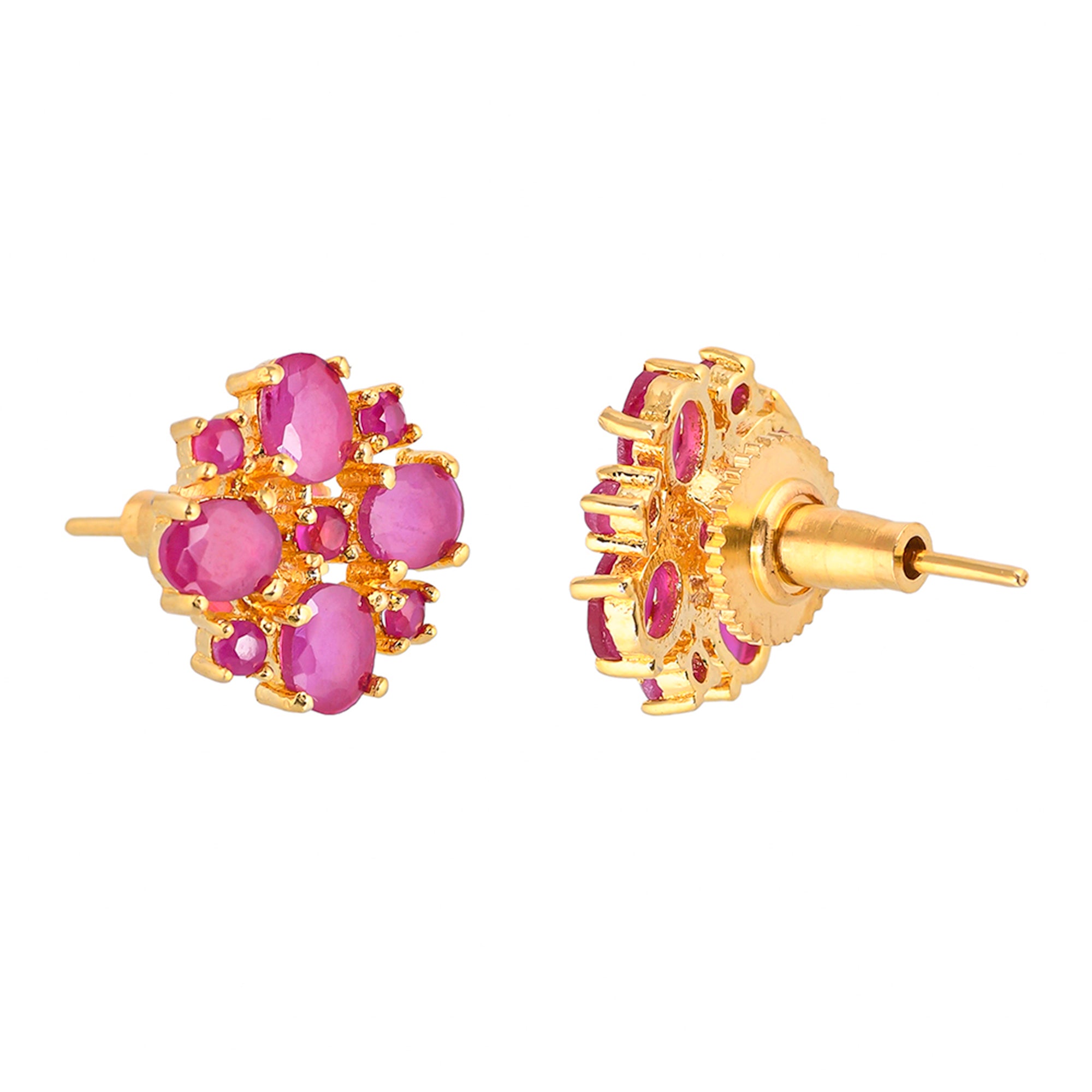 Pink cluster setting zirconia gemstones stud earrings. Gold plated and crafted from brass. Wear with casual attire.