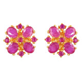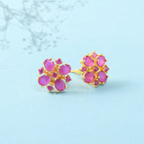 Gold Plated Pink Cluster Setting CZ Stud Earrings