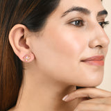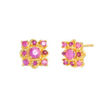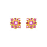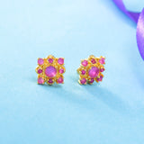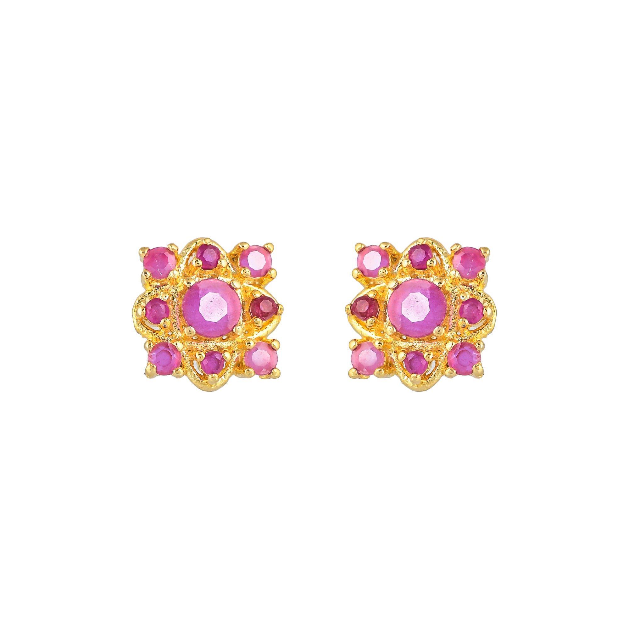 Pink CZ gems stud earrings with classic yellow gold plating. Made from brass and good for casual wear.