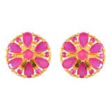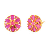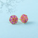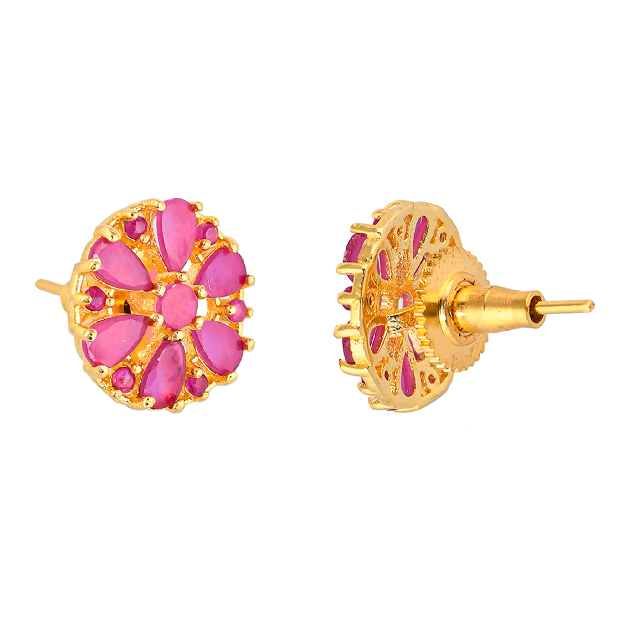 Gold Plated Teardrop and Round Cut Pink CZ Stud Earrings