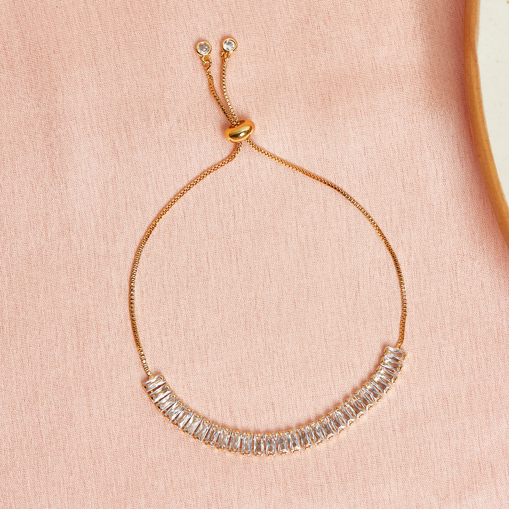 Gold Plated Women's CZ Adorned Chain Bracelet