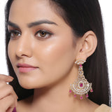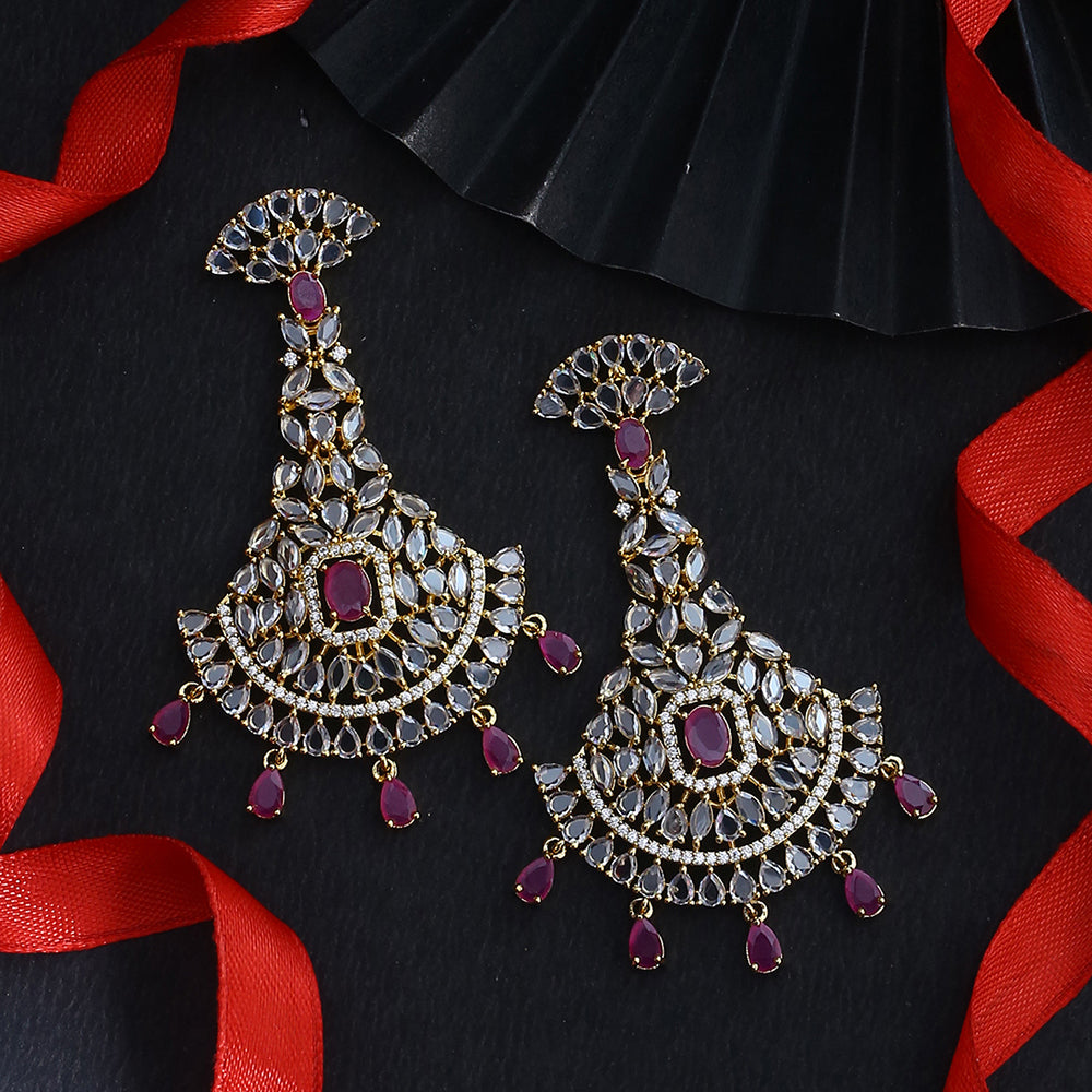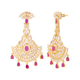 American Diamond gems adorned drop earrings made from brass. Yellow gold plated. Wear with a traditional saree. This piece of jewelry comes with the Voylla assurance of quality and durability.