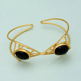 Gold Tone Black Stone Studded Cuff Bracelet