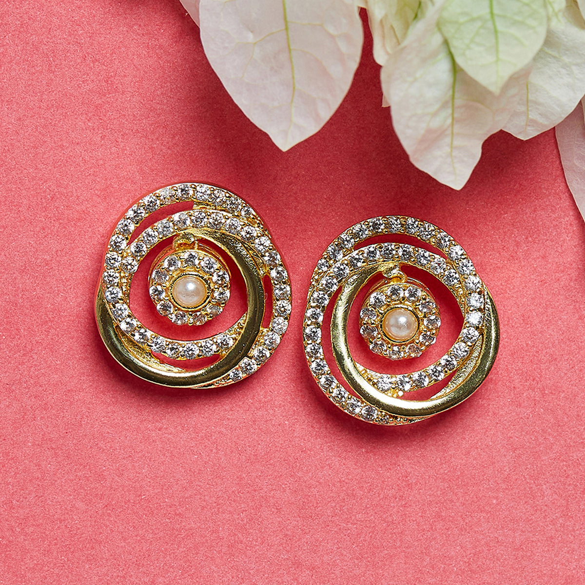 Crafted to perfection, this elegant pair of earrings is must have in your jewelry stash that will enhance the glory of yours as well as your collection. Studded with pearl for a lovely look.