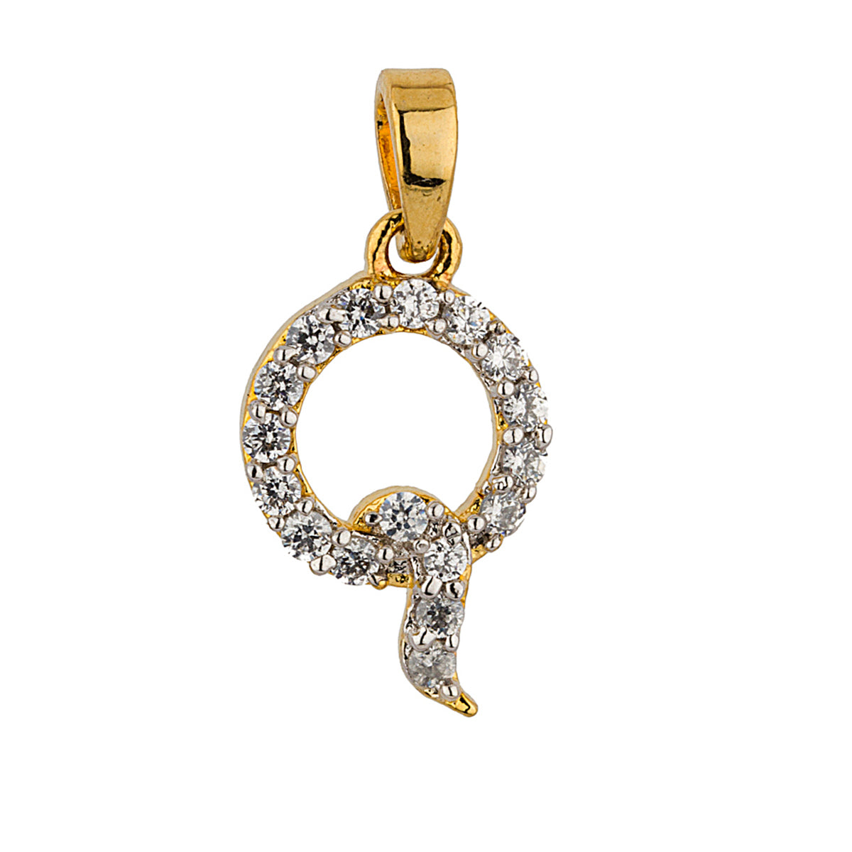 Showcased here is a pendant in gold tone embellished with American Diamond sparkles featuring 'Q' alphabet that will surely make a mark and will add a dash of grace and elegance to your look. Its exquisitely design promises to please every eye that sets on it.