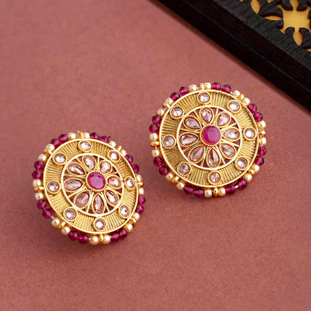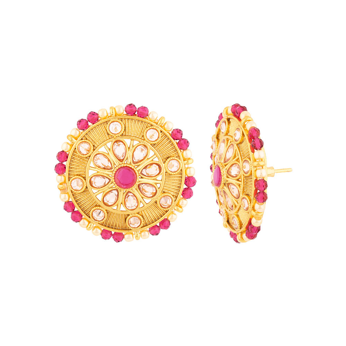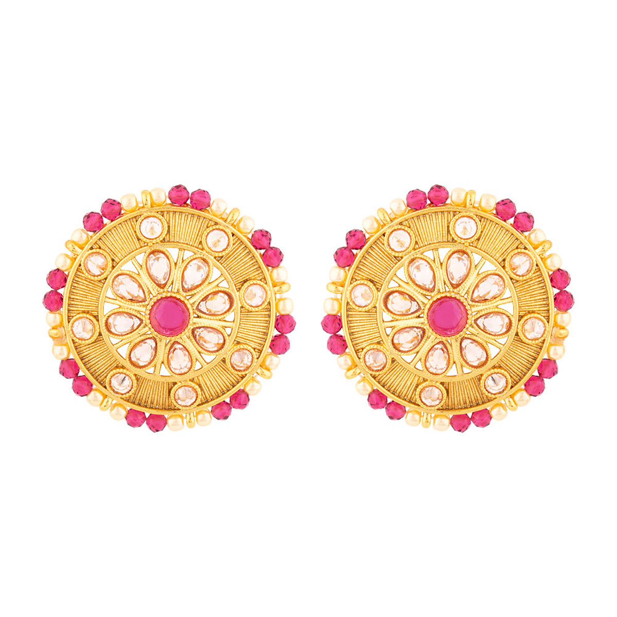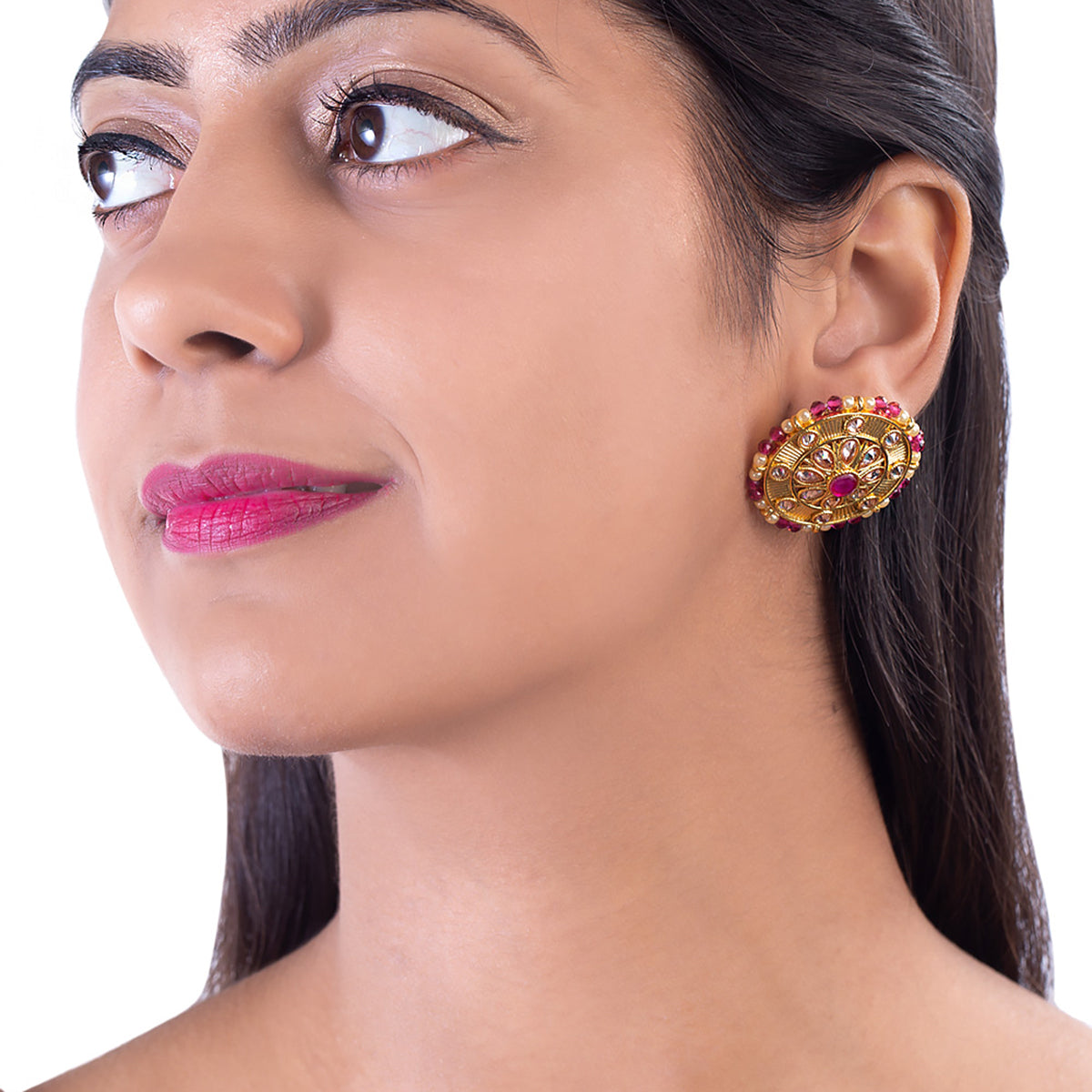 Gold toned brass stud earrings with faux kundan gem embellishments. Pair with Indian attire.
