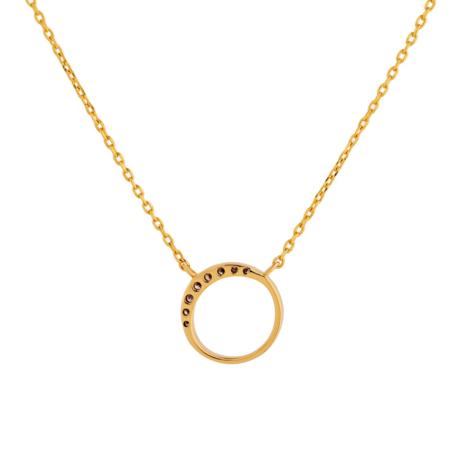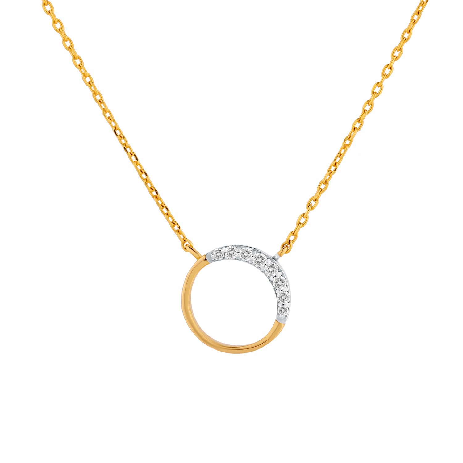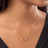 Crafted in 925 Sterling Silver with 2.5-micron gold plating, this elegant necklace features 8 round-cut lab-grown diamonds (VS/F-G clarity) with a total estimated weight of 0.27 carats. The graceful arched pendant blends minimalist design with luxe craftsmanship. It is perfect for everyday wear or special occasions.
