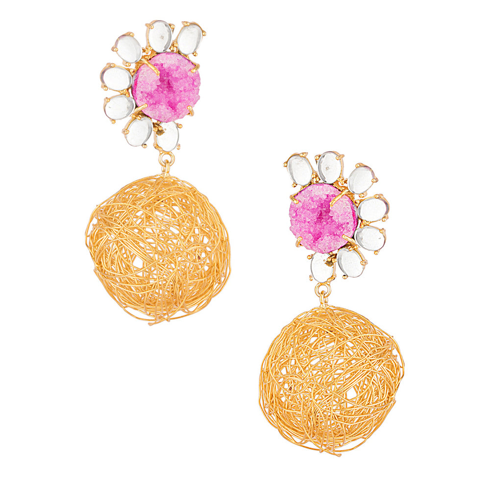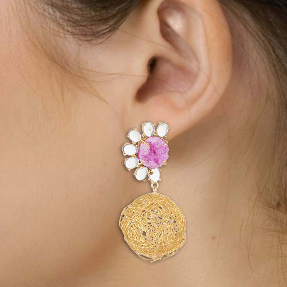These attractive earrings display a pretty look with their ball droppings and decked with pink druzy stones that will make your look attractive and admirable. These stylish earring pair will add a lot appeal to your femininity.