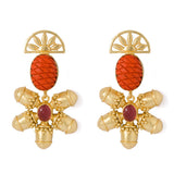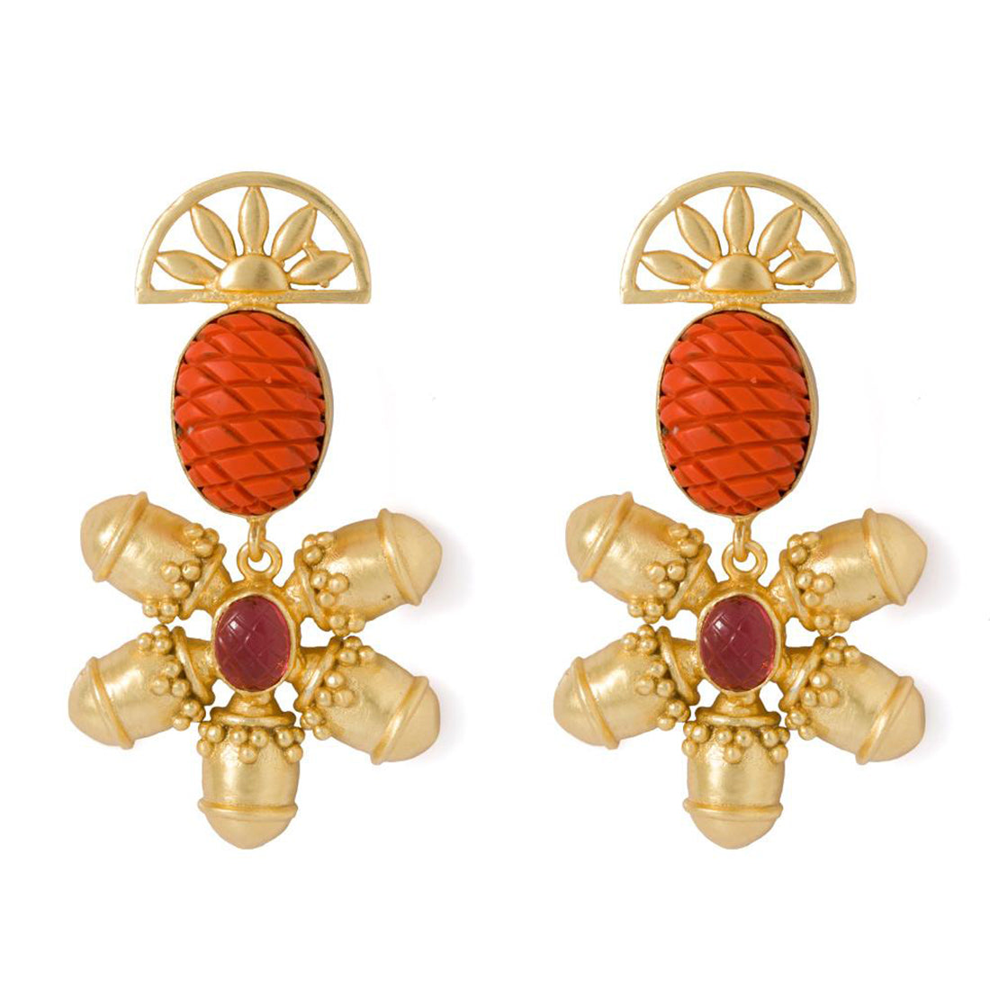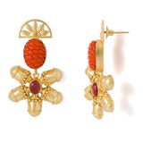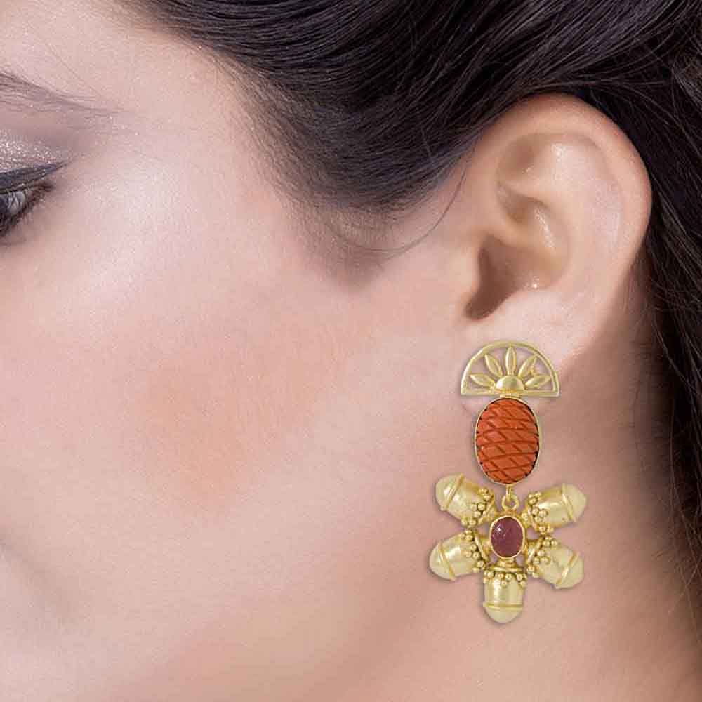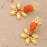Immaculately designed, this colorful dangler earrings pair radiates gleaming beauty and charm. Beautified in gold tone and decorated with attractive orange and pink stones, this pair of stunning dangler earrings adds character to your dress and appearance.