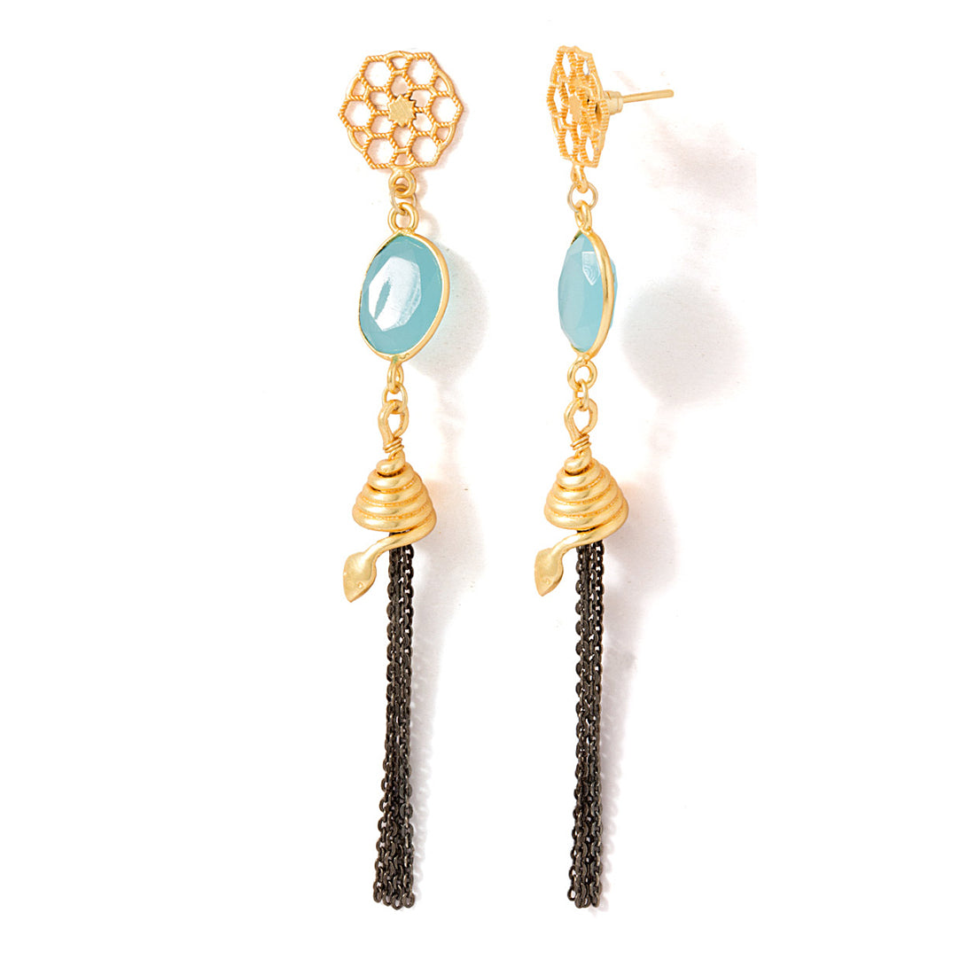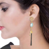Extremely unique you will surely fall in love with this beautiful designer dangler earrings studded with aqua blue stones that has been crafted to perfection just for you. These are also rust-resistant.