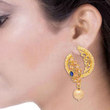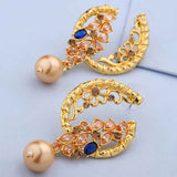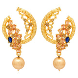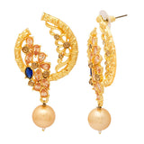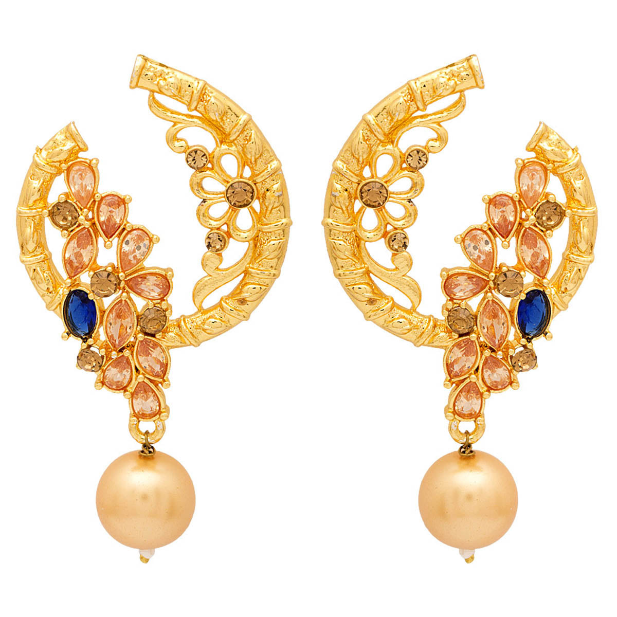 Golden Designer Danglers Earrings With Beige Stones & Pearl Beads