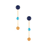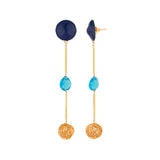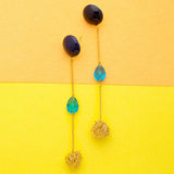 Add a creative touch to your look with this pair of blue stone decked dangler earrings featuring golden ball drop. These earrings offers long-lasting shine and durability.