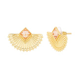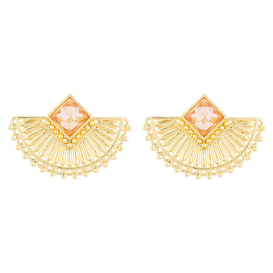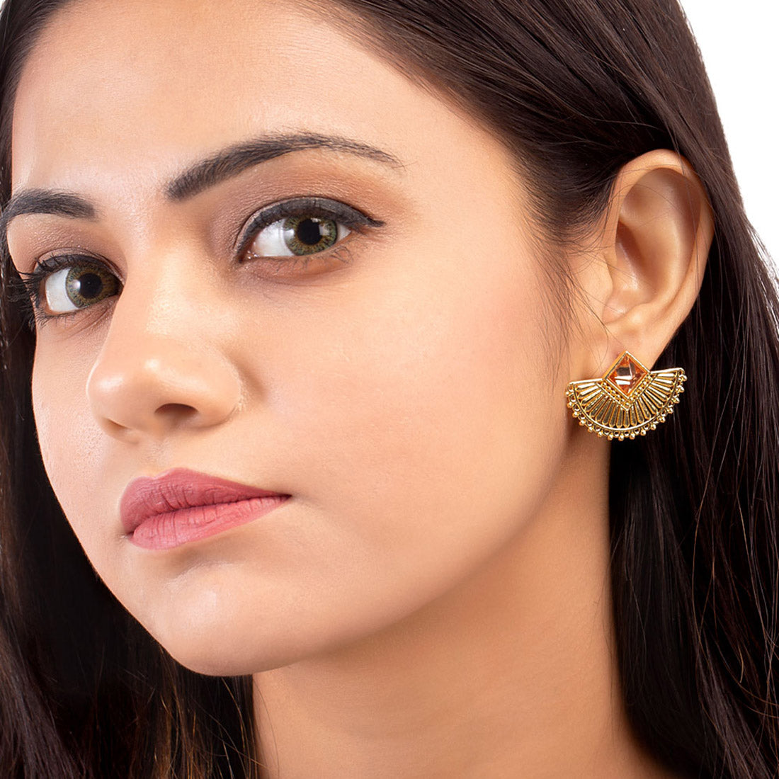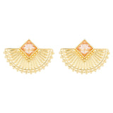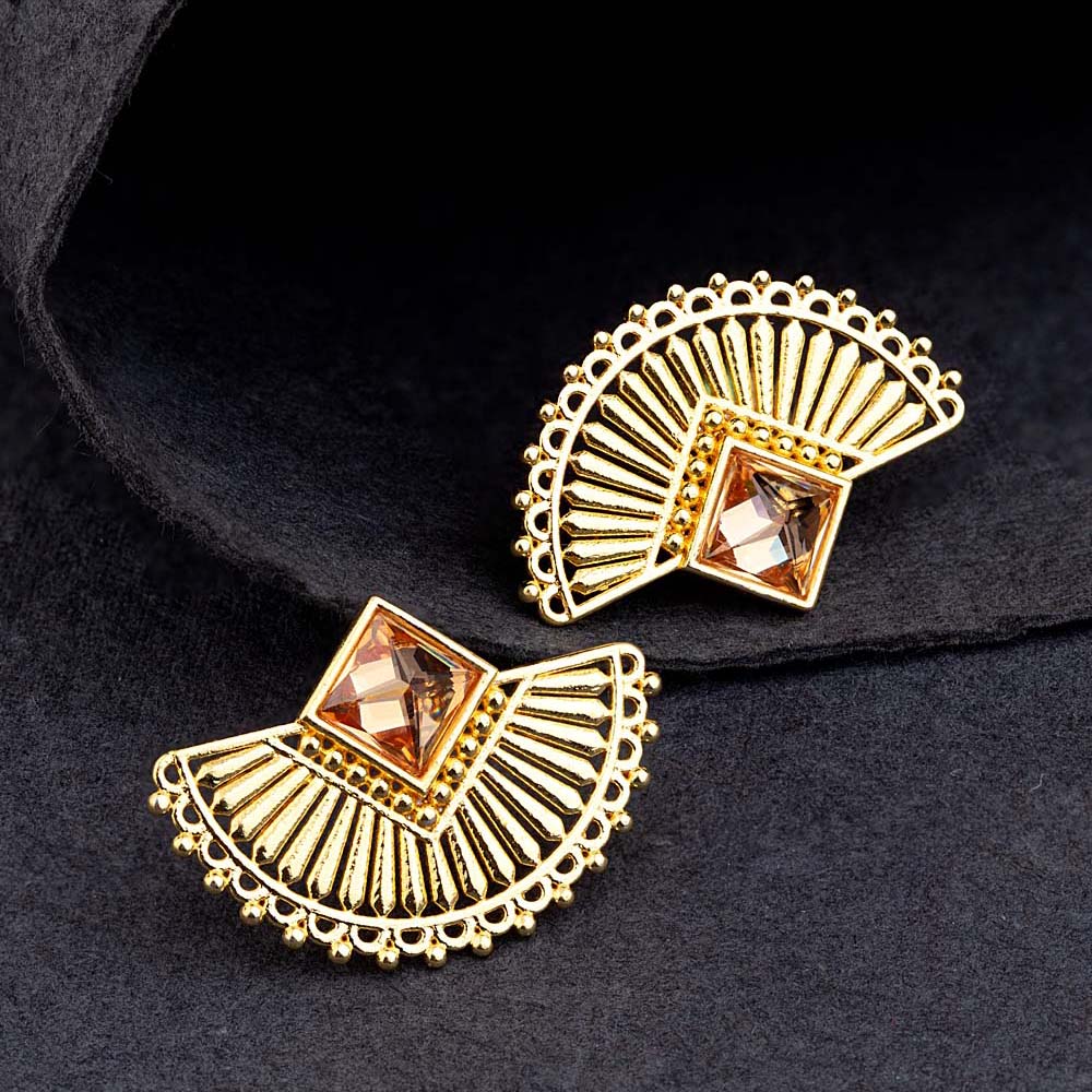 Brass decorative crescent earrings with yellow gold plating. Lightly embellished and good for casual and formal wear.