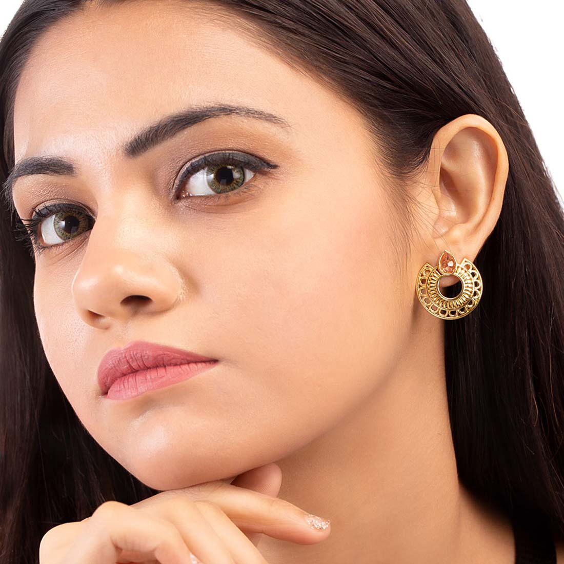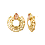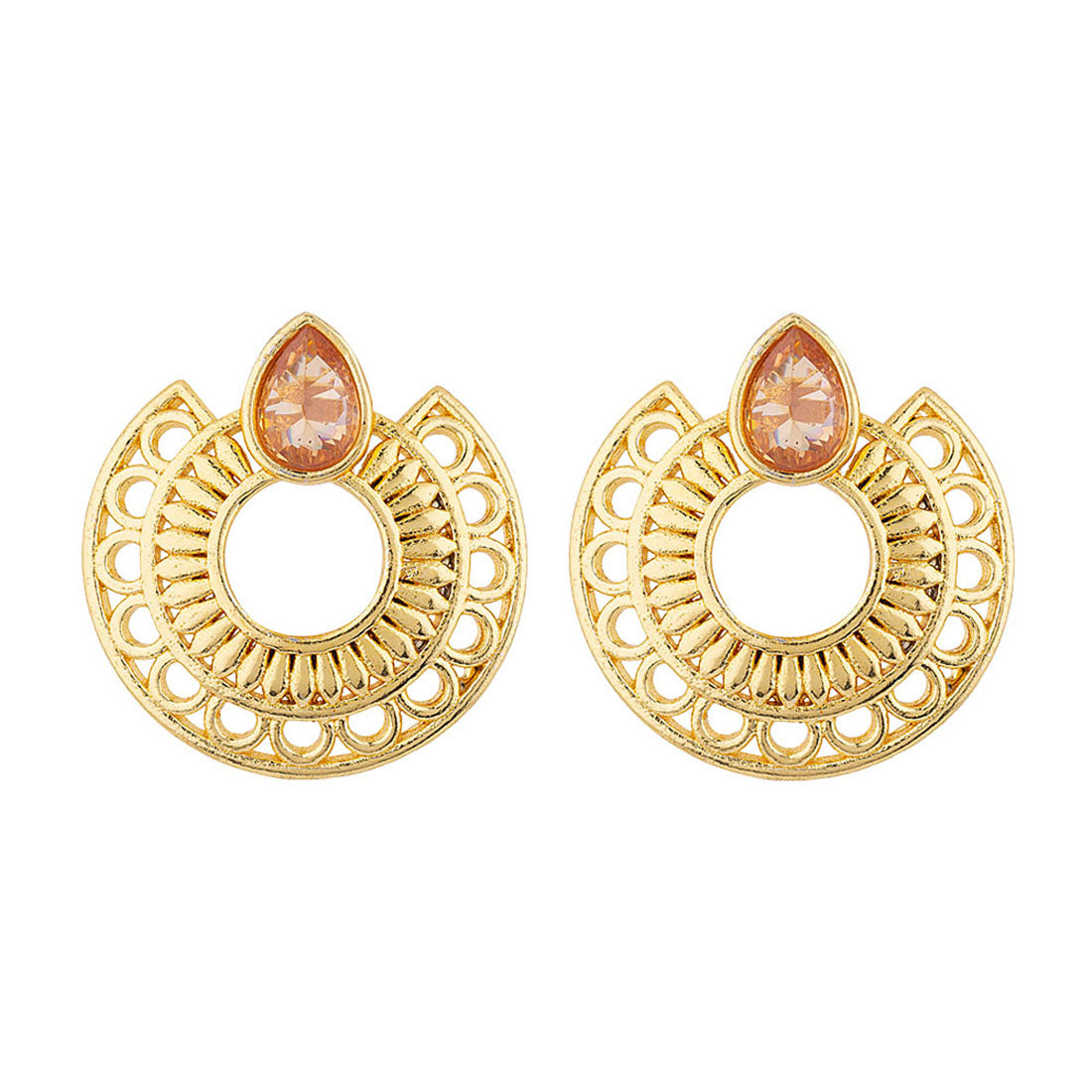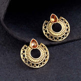 Ethnic hoop earrings embellished with American Diamond gems. Crafted from brass, yellow gold plated and good for Indian and Indo-Western looks.