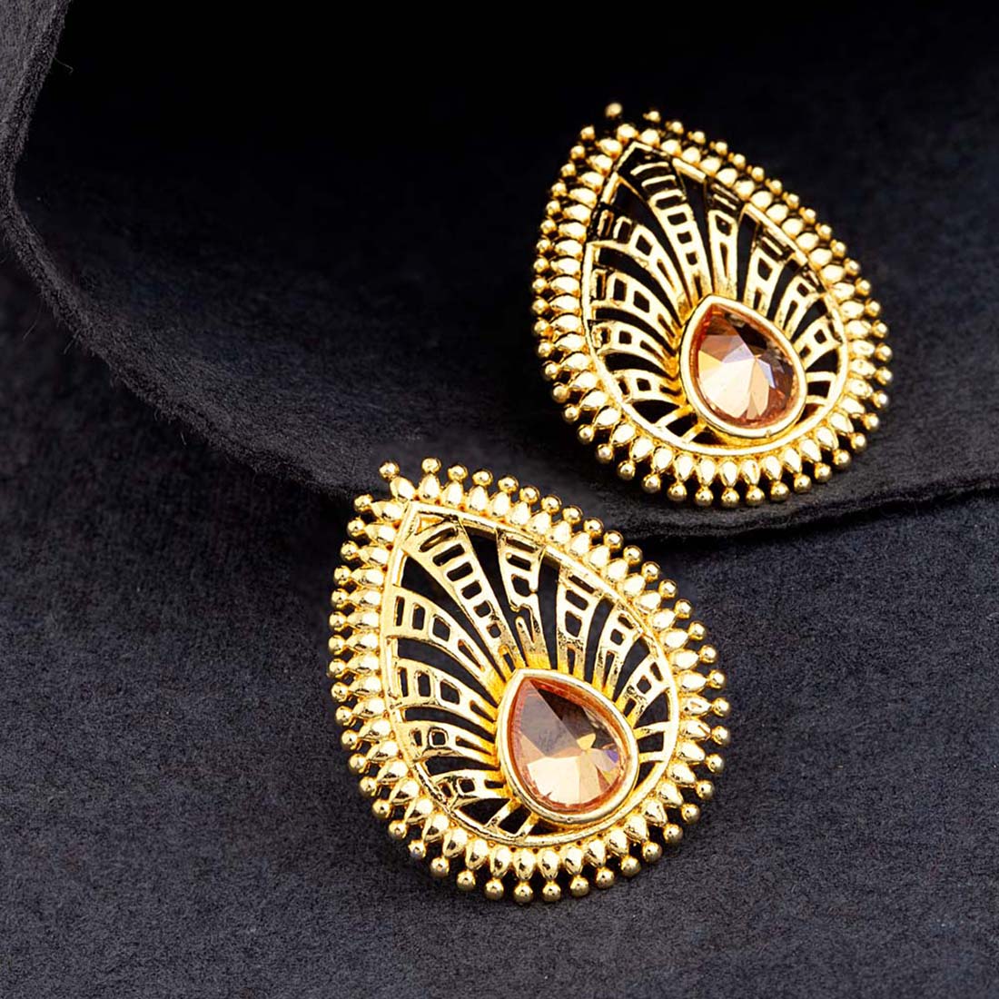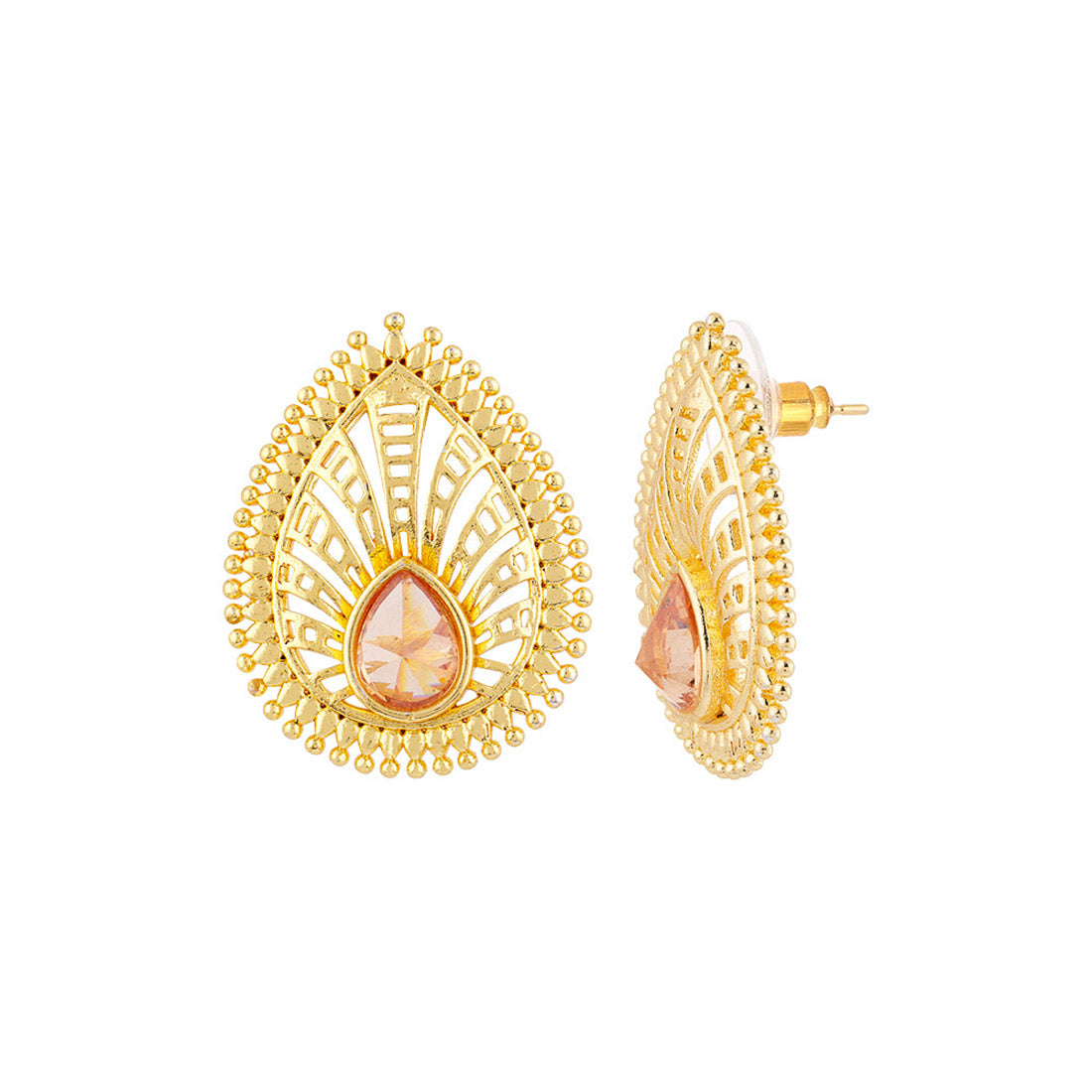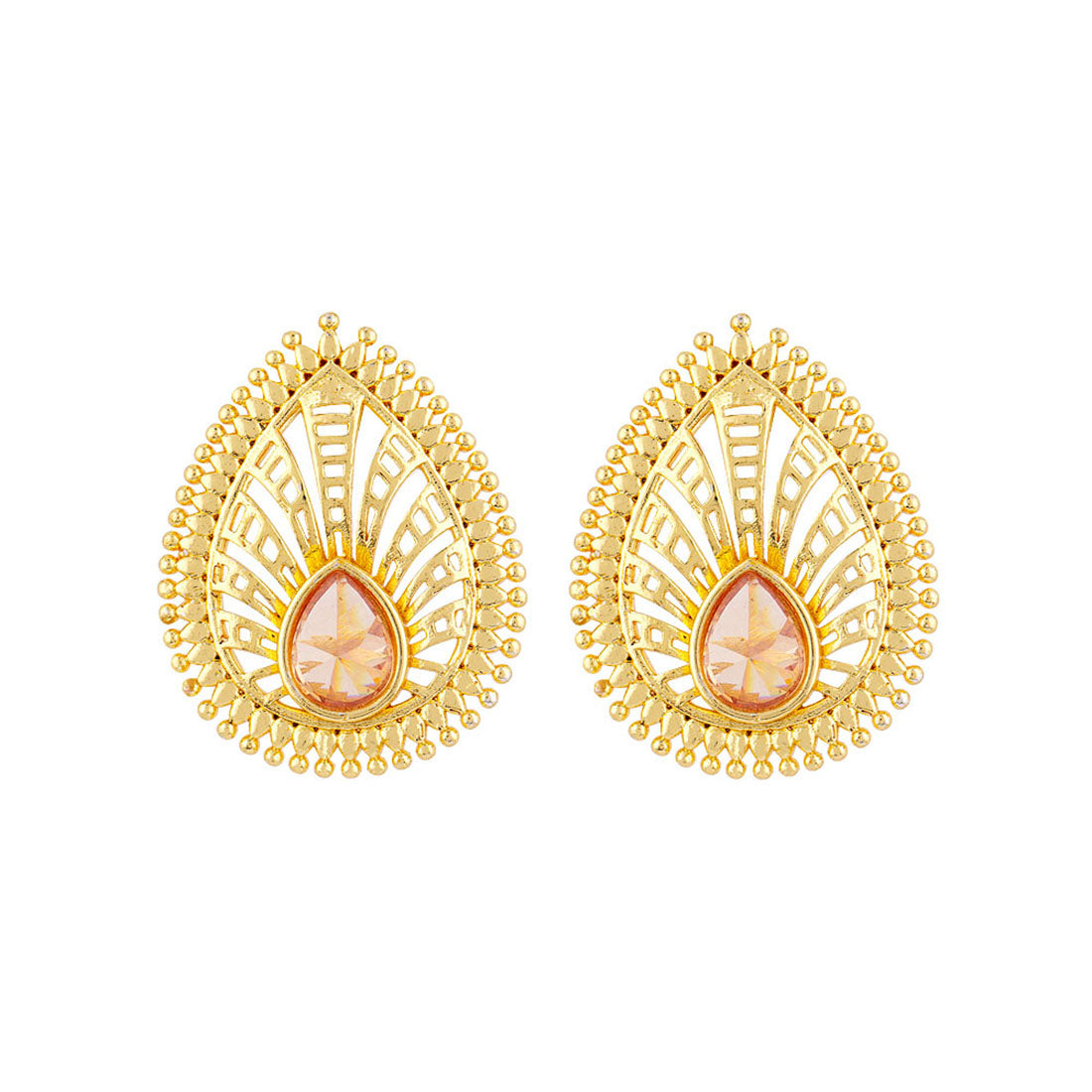 Paisley stud style earrings made from brass. Lightly embellished and yellow gold plated. Wear with an ethnic skirt.