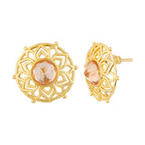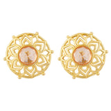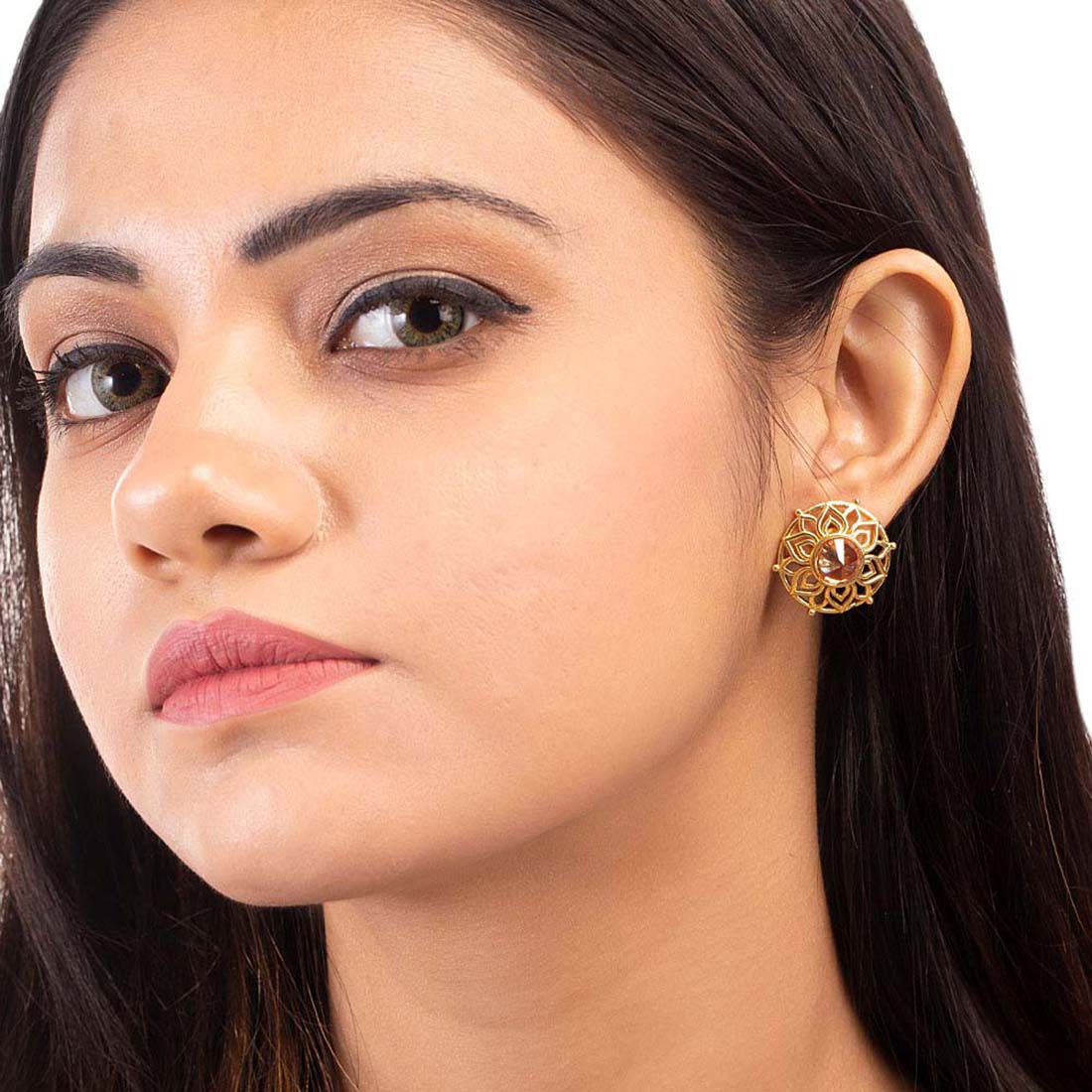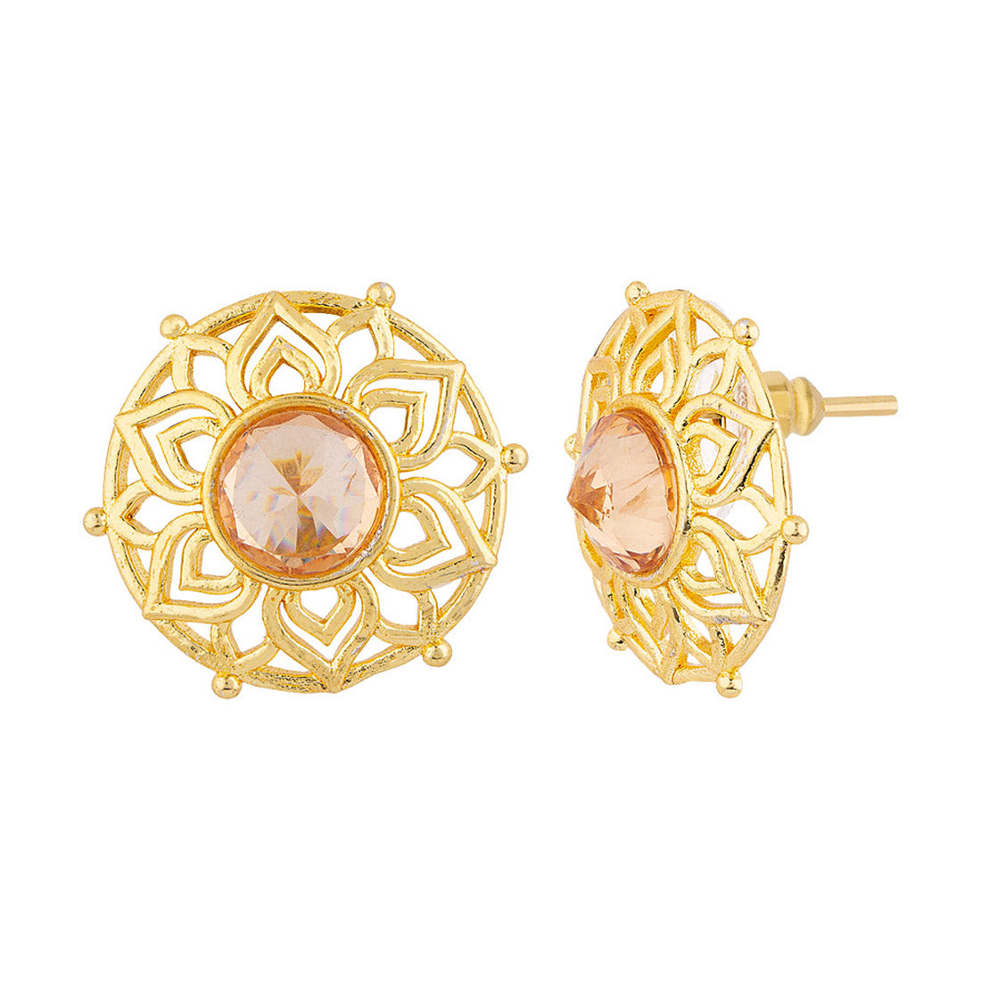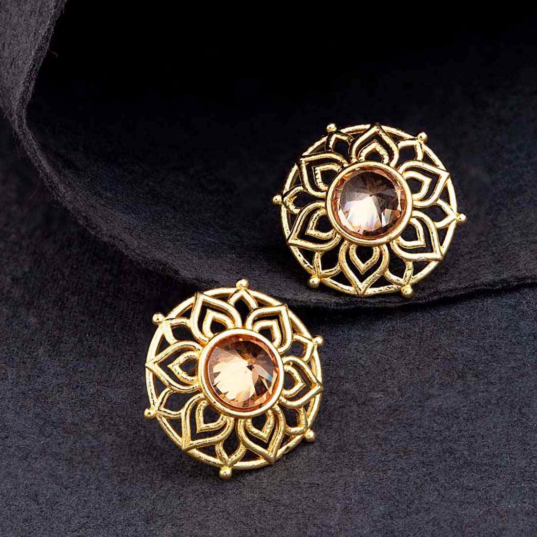 Rangoli inspired stud earrings with CZ gems. Made from brass and yellow gold plated. Good for everyday wear.