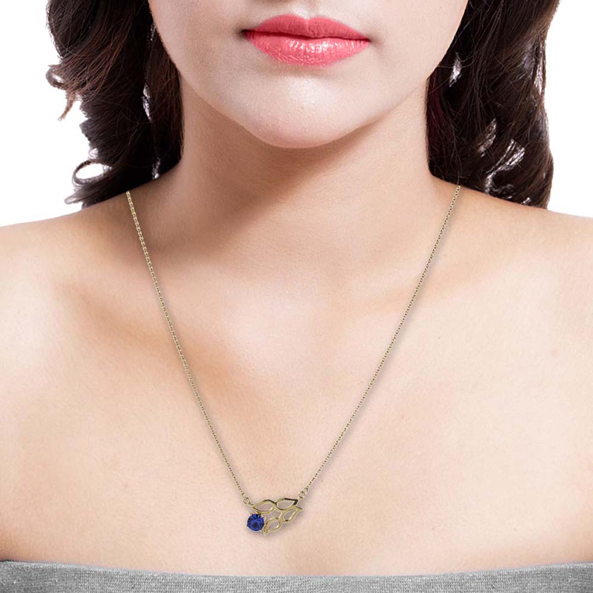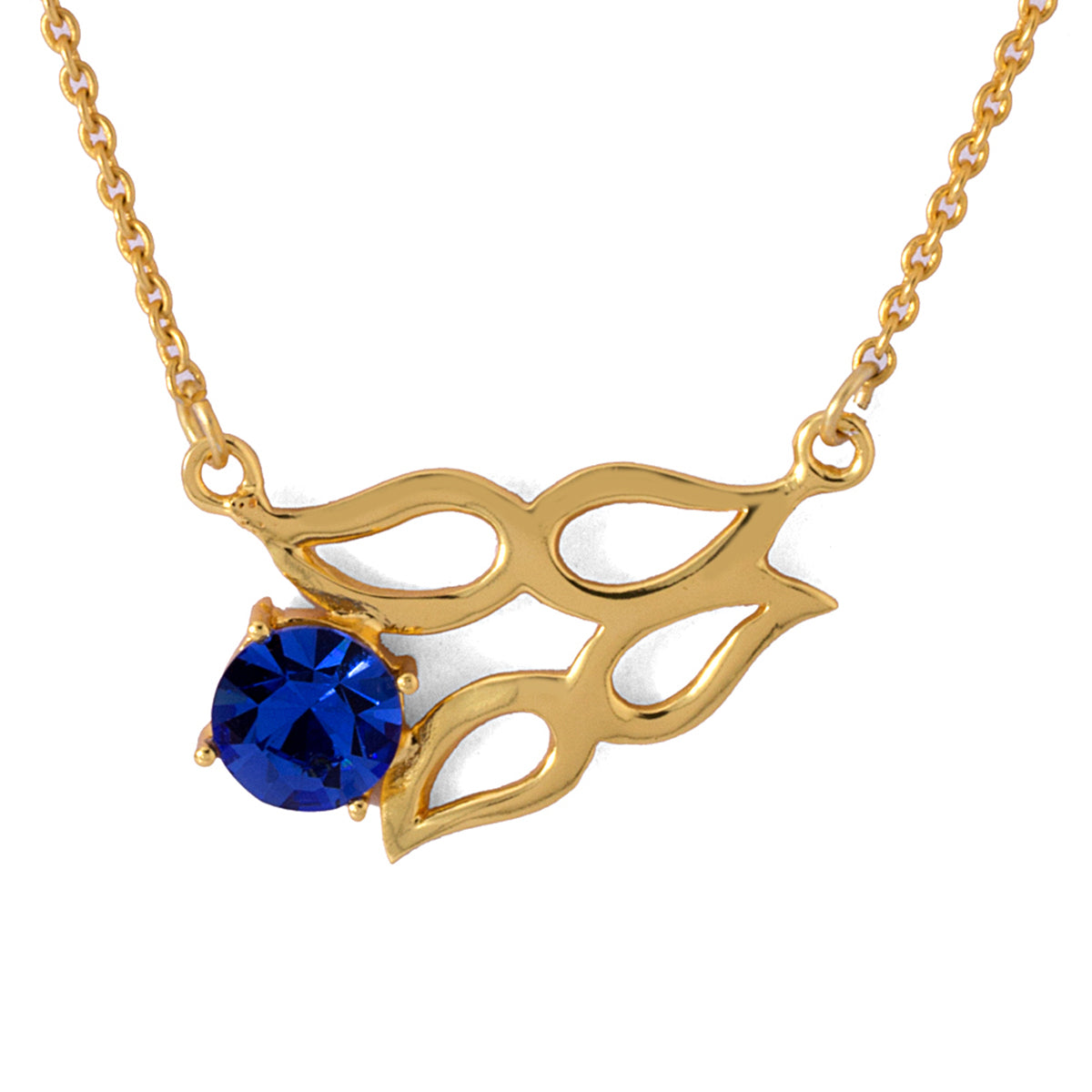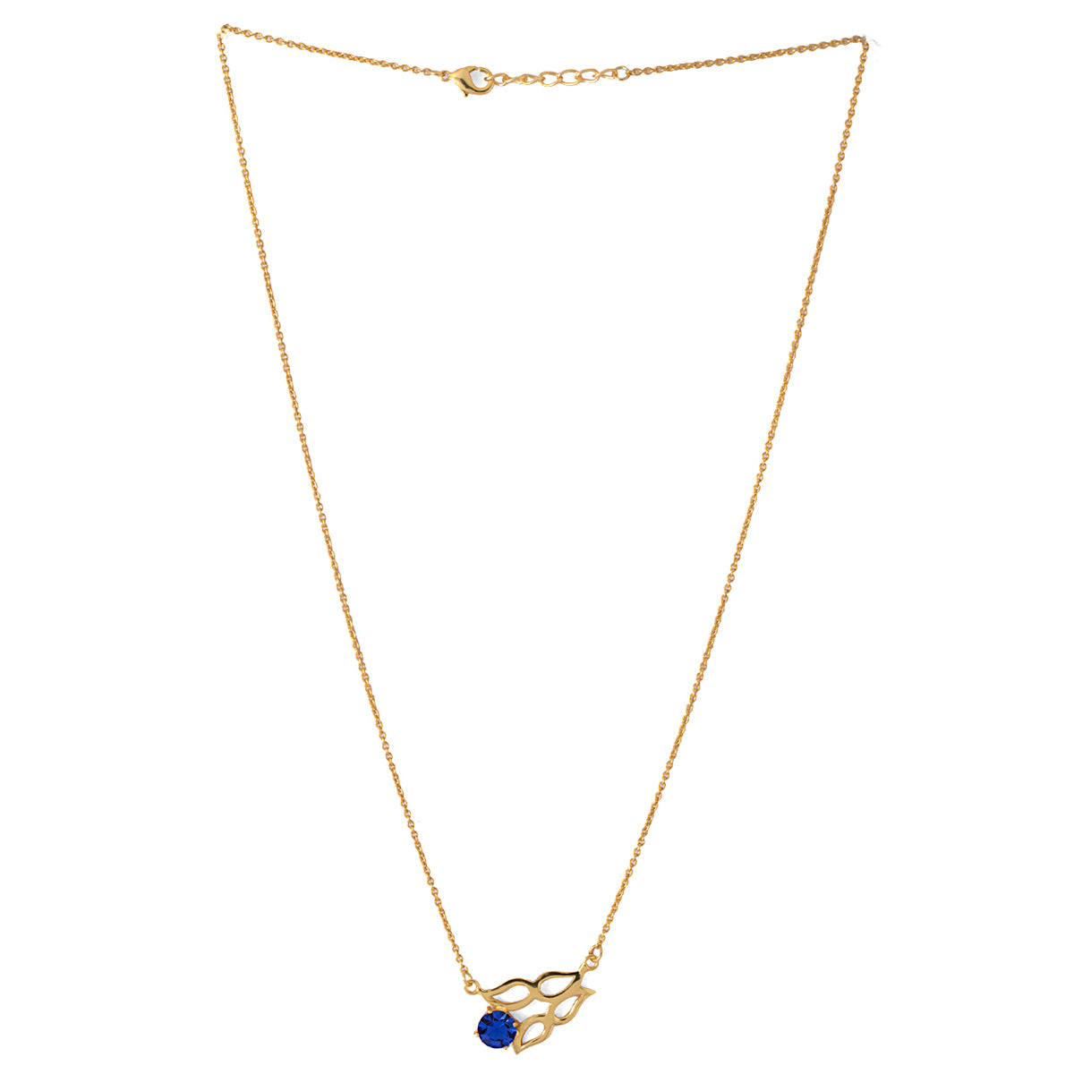 Shine away to glory with this golden necklace made with blue Swarovski Zirconia that has been crafted to perfection and is made just for you. Glossy finish add more splendor to the ornament.