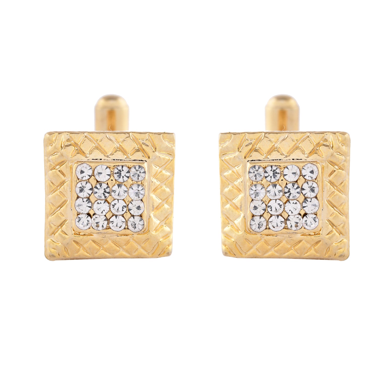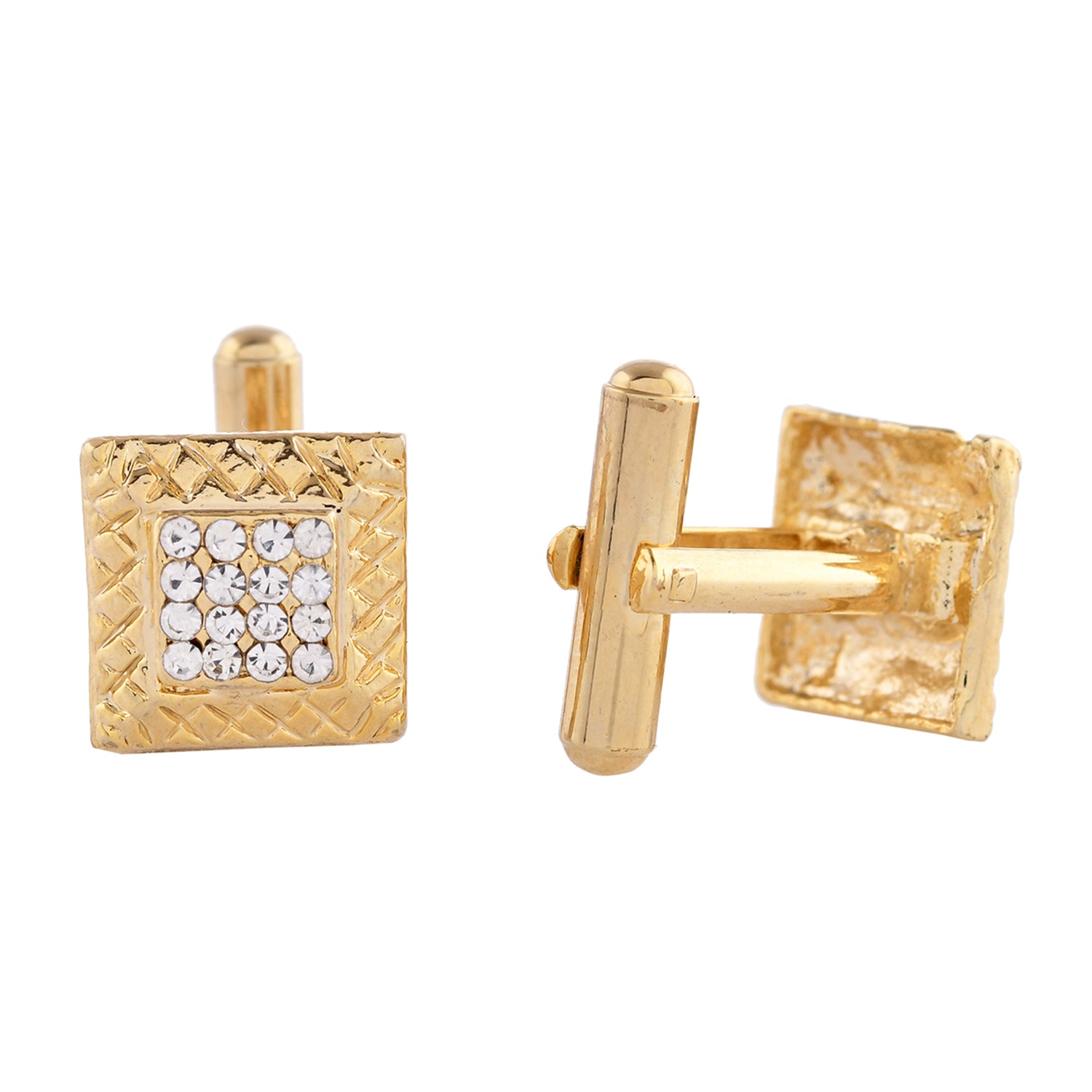 Elevate your wardrobe with the Golden Radiance Men's Cufflinks from Voylla's exclusive The Gentleman’s Club Collection. These sophisticated cufflinks are meticulously crafted from premium alloy, adorned with a luxurious gold plating that ensures lasting elegance. The intricate design features a square shape embedded with a dazzling array of American diamonds, adding a chic sparkle to any formal or festive attire. Perfect for weddings, parties, poojas, or everyday wear, these cufflinks make a grand statement, combining traditional craftsmanship with contemporary flair. Presented in a stylish box, they are ideal for gifting occasions such as Valentine's Day, Diwali, Rakshabandhan, Christmas, and New Year. Whether for your father, boyfriend, husband, or friend, these versatile cufflinks are a perfect addition to any gentleman’s accessory collection, effortlessly enhancing the sophistication and charm of any outfit.