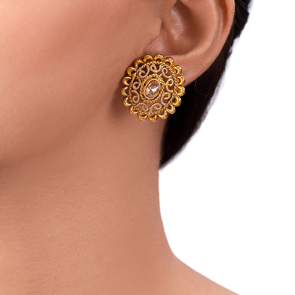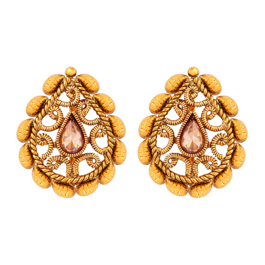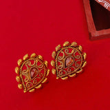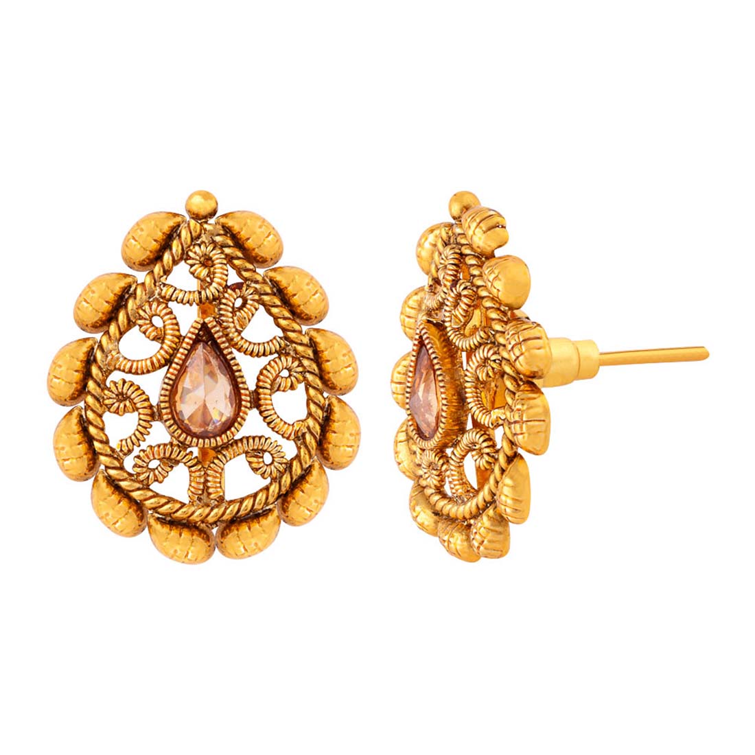 Gemstones embellished stud earrings, made from brass and yellow gold plated. Wear with ethnic outfits.