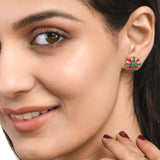 Green and Pink CZ Gemstones Tiny Stud Earrings