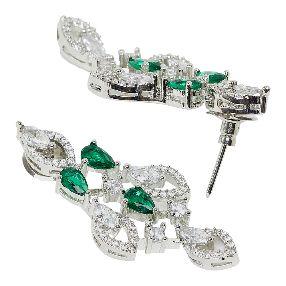 Green and White Teardrop Zircons Silver Plated Brass Jewellery Set