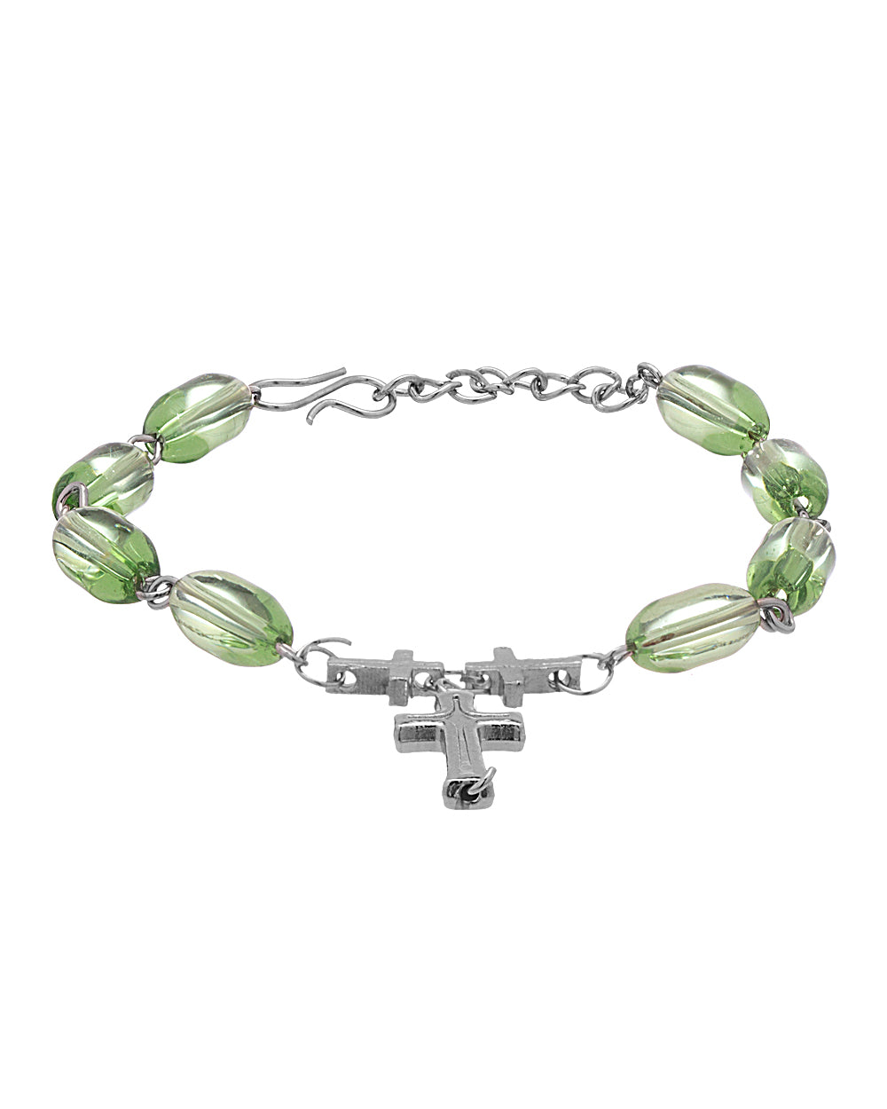 Add a glorious sparkle to your look with this exquisite piece of green stone studded beaded bracelet in silver tone. Embellished with gleaming color stones it will definitely provide a special grace to your look.