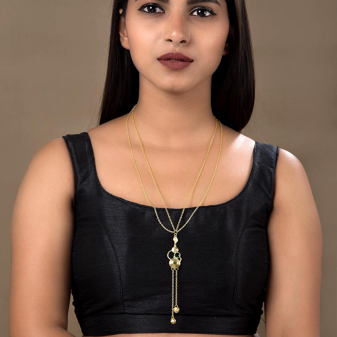 Bring in the party mood with this yellow gold Green Beauty Geomatrix necklace. Wear with a black top and jeans for that night out with friends. This piece of jewelry comes with the Voylla assurance of quality and durability. Caring for your fashion jewelry: We, at Voylla, take care of every piece of jewelry so that you don't spend hours caring for them.