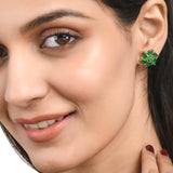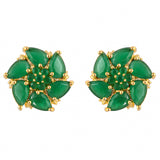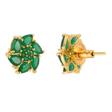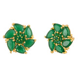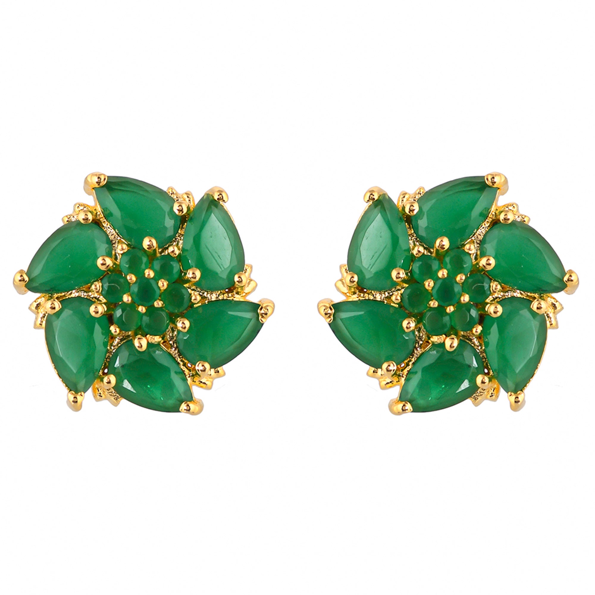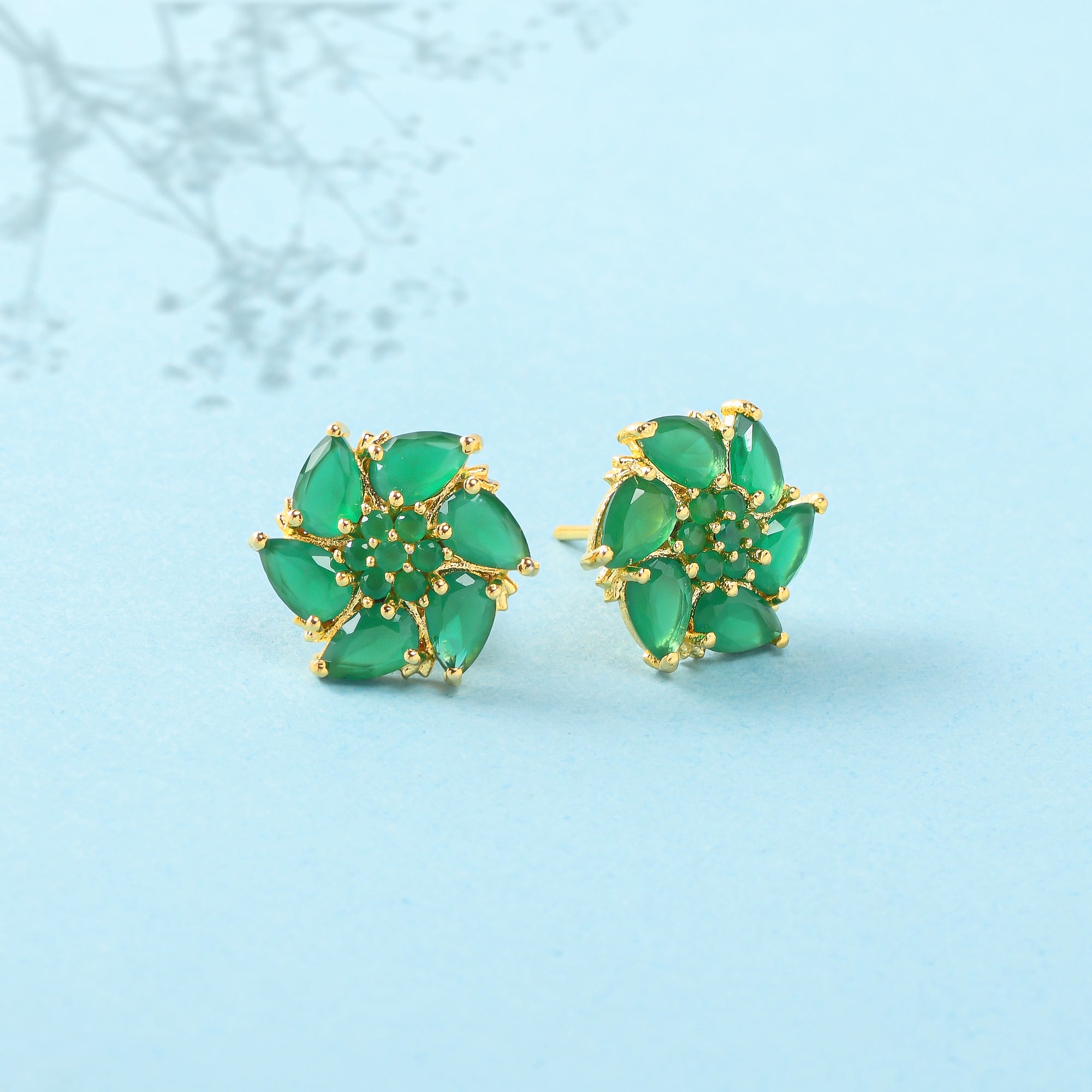 Green CZ gemstones stud earrings, made from brass and yellow gold plated. Good for casual looks.