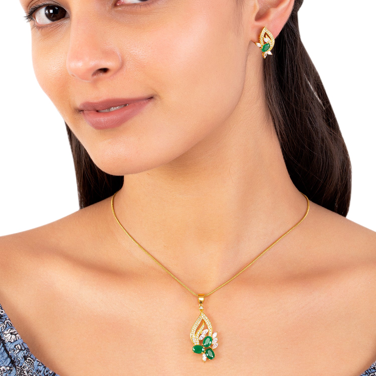 Sparkling Elegance Emerald Hued CZ Jewellery Set