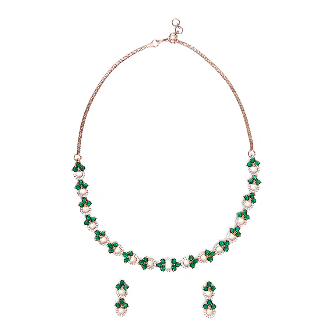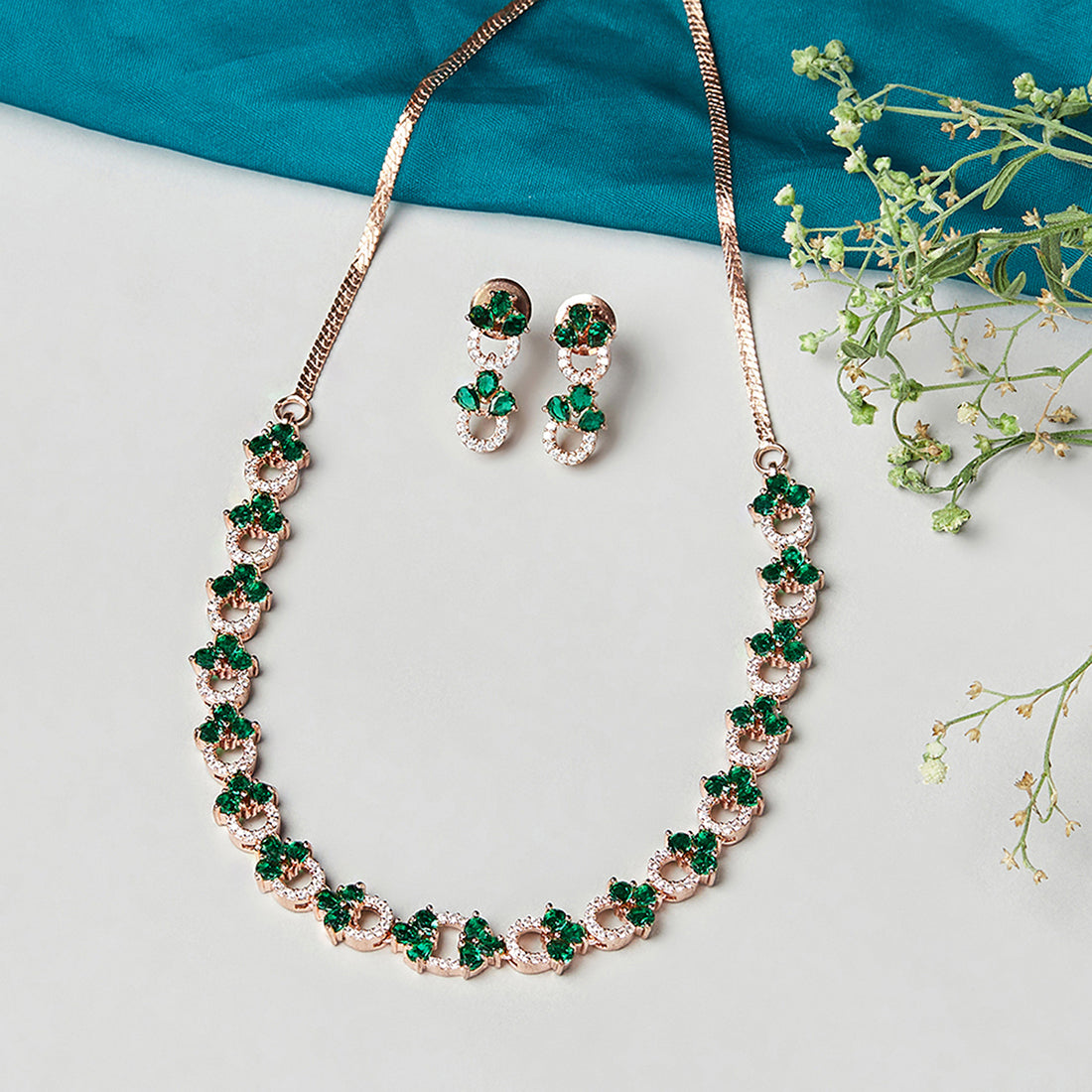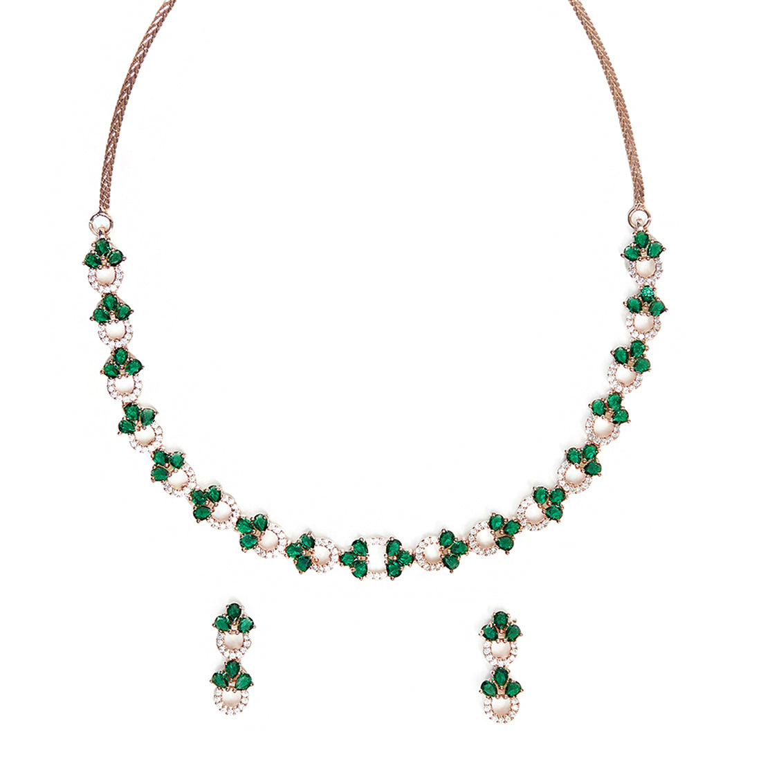 Green CZ Gems Adorned Sparkling Elegance Necklace Set