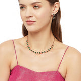 Green zircon gemstones embellished necklace set made from brass. Silver plated and a good match for formal looks of all kinds.