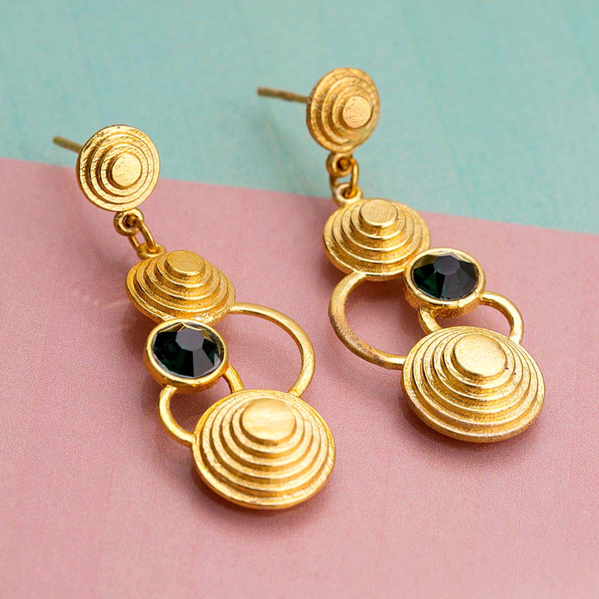 Wear the classic contemporary chic look on your ears with these brass Green n Gold Circles Geomatrix earrings. Put them on with a stylish black full length dress and you are ready for that formal occasion. This piece of jewelry comes with the Voylla assurance of quality and durability. Caring for your fashion jewelry: We, at Voylla, take care of every piece of jewelry so that you don't spend hours caring for them.