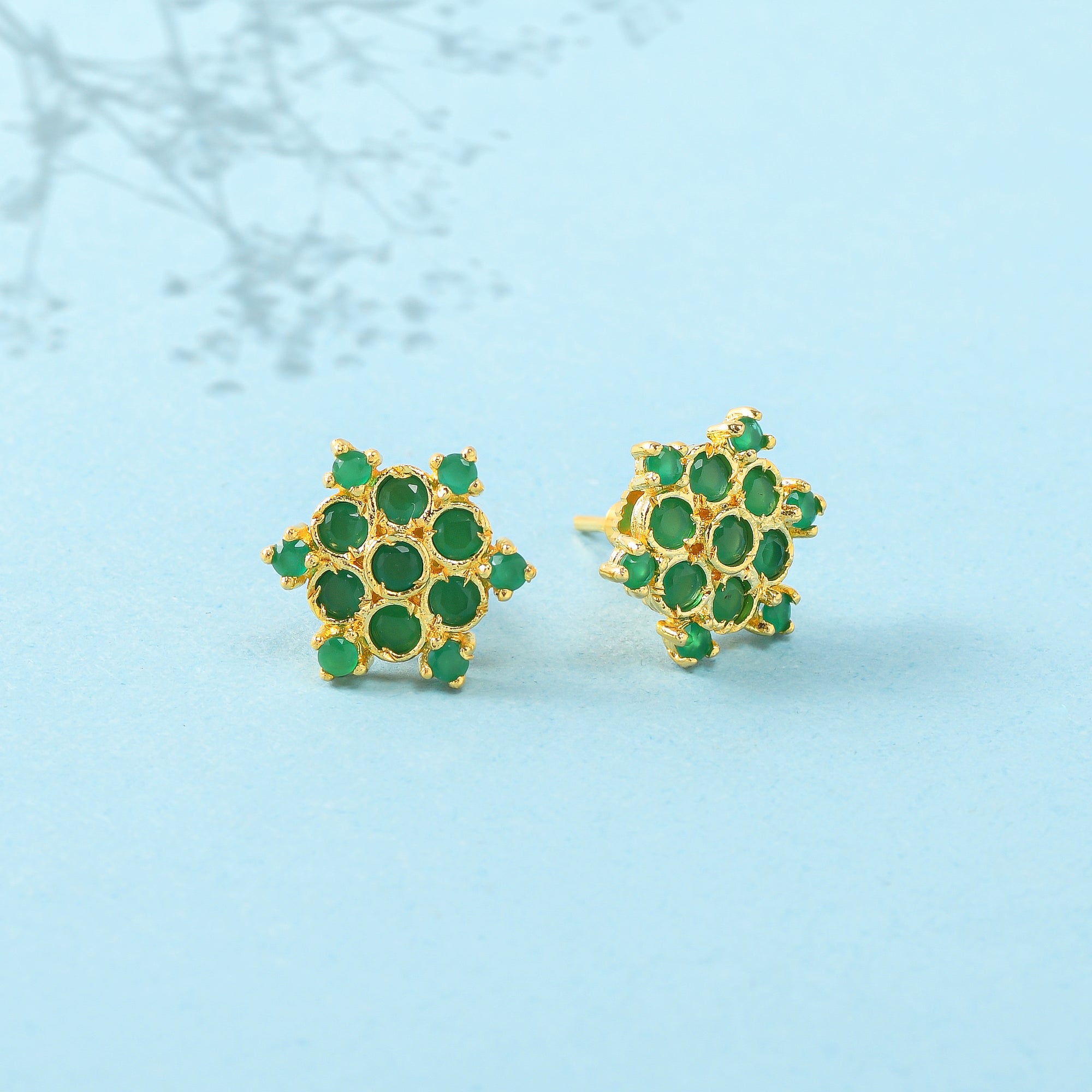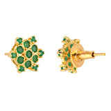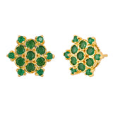 Green Round Cut Zircons Gold Plated Stud Earrings