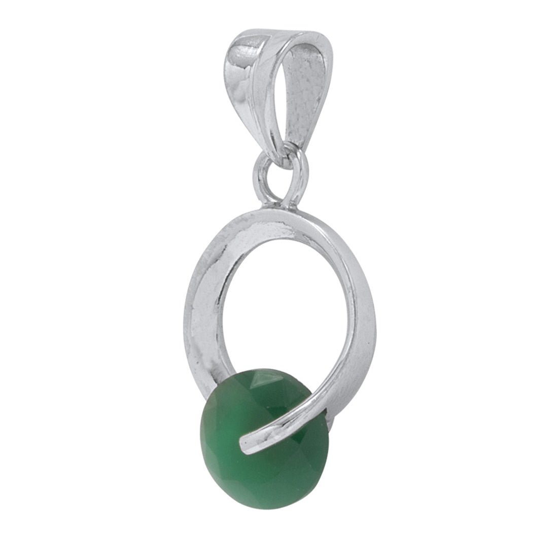 Highlight the beauty of your delicate neckline with this unique design pendant. Adorned with an alluring green stone and polished brightly in silver-tone finish, this piece is bound to attract many compliments. Make it yours today.