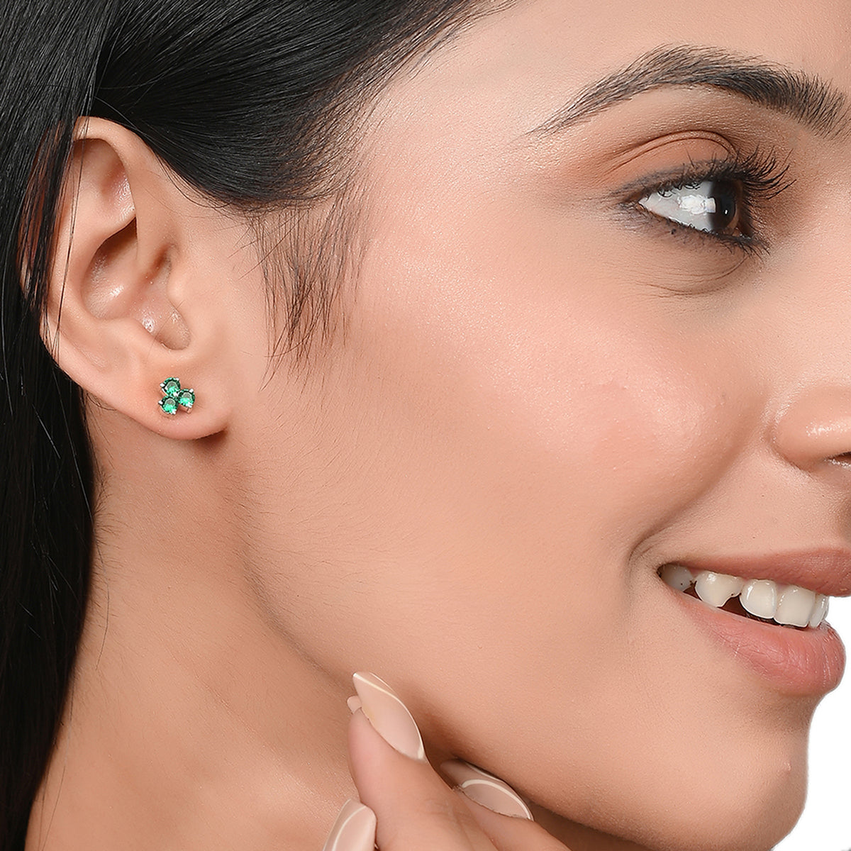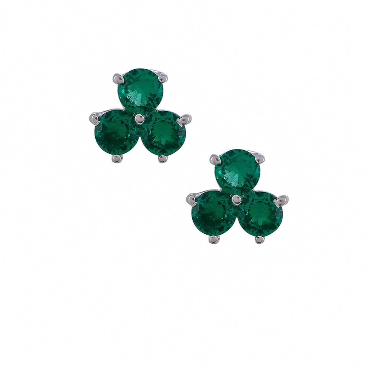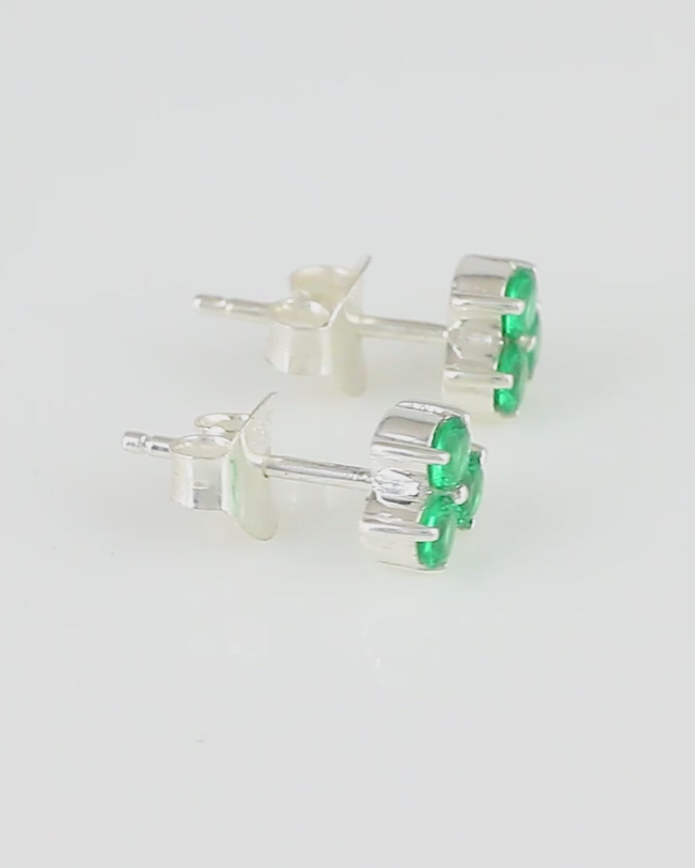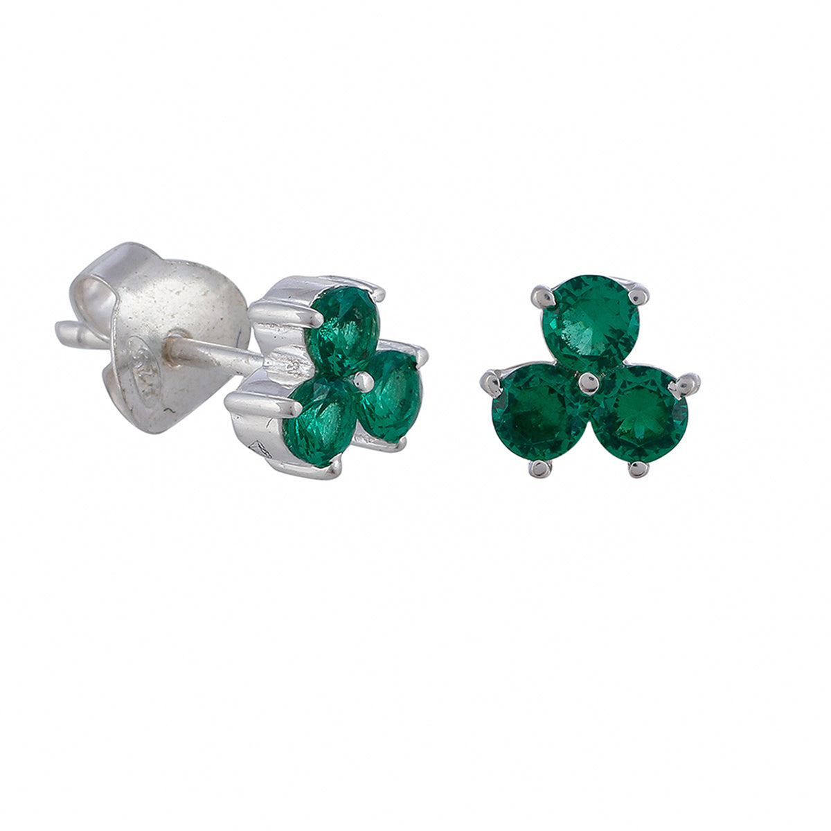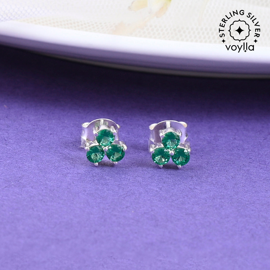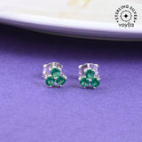 Green Stone Decked 925 Sterling Silver Ear Studs