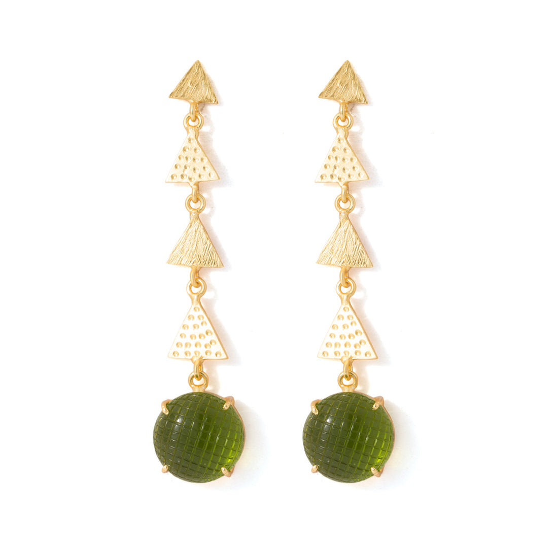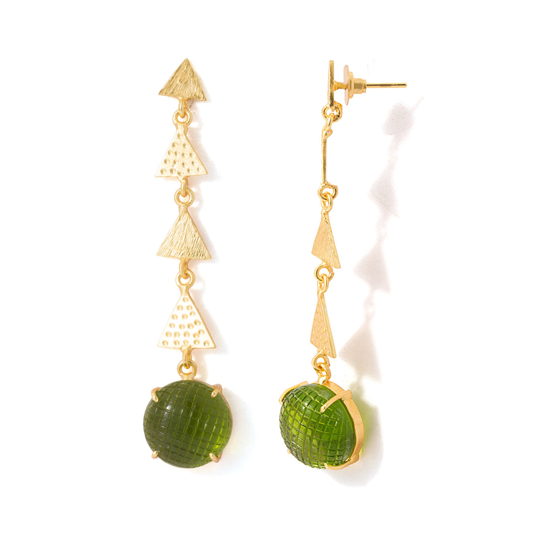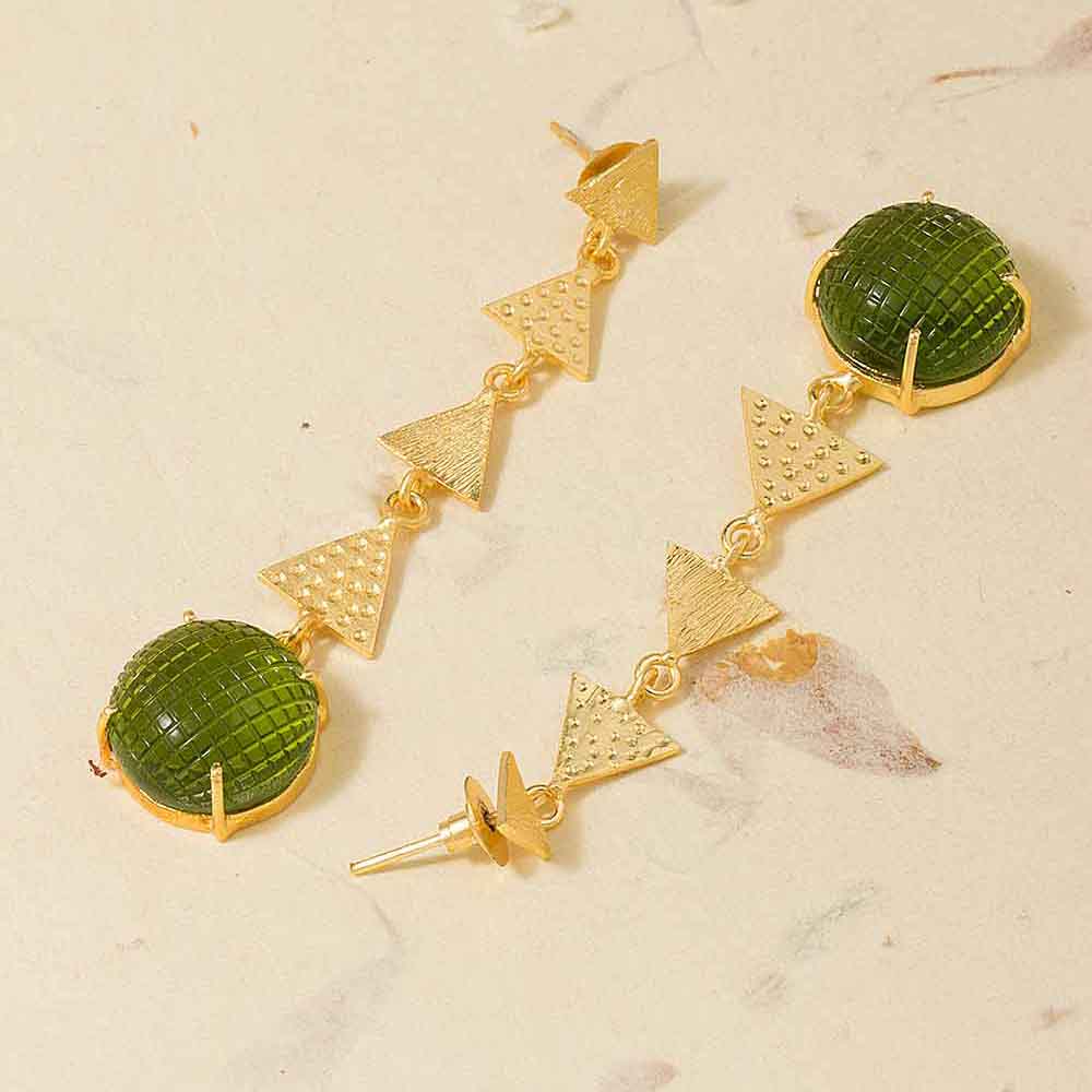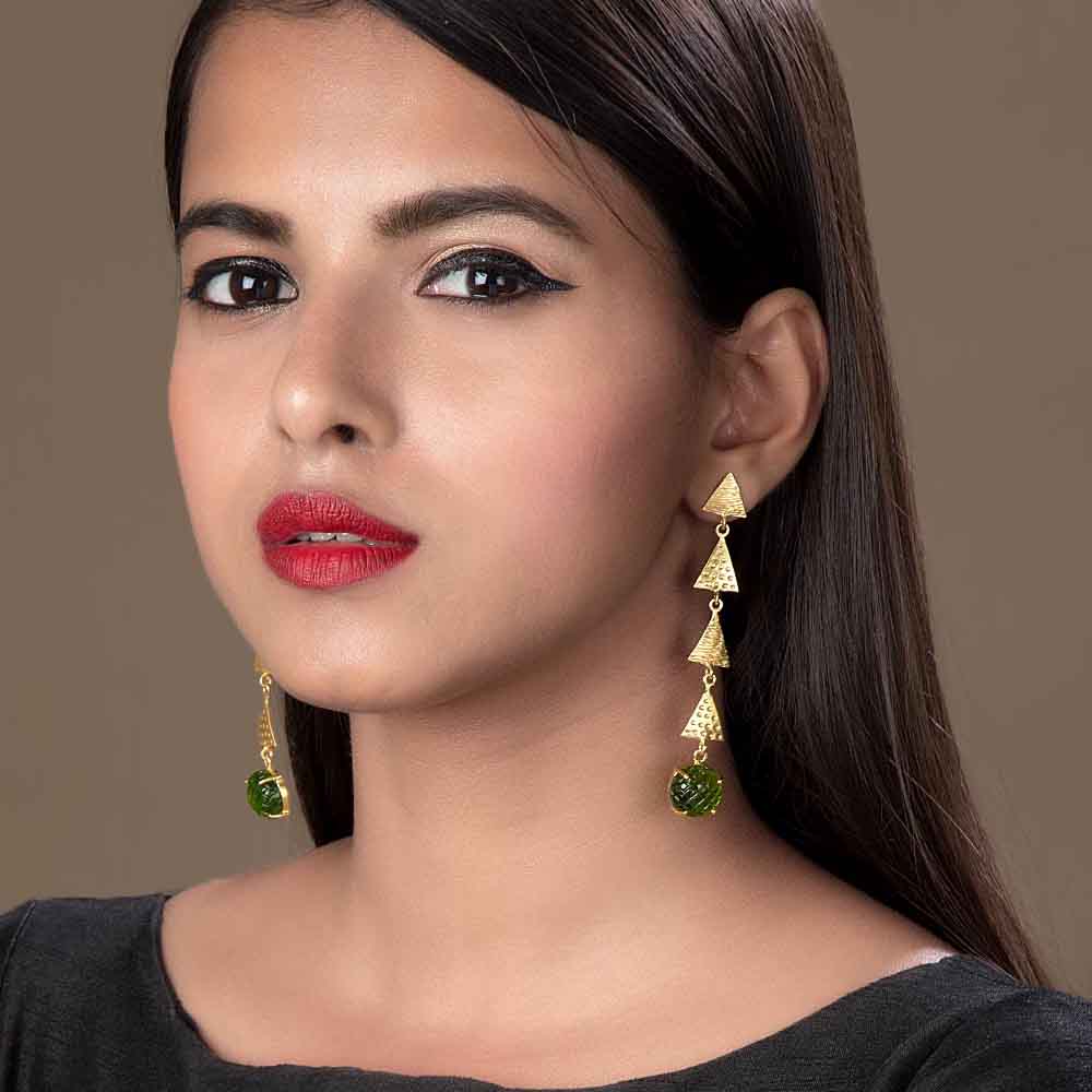 On- trend and chic, with these golden dangler earrings you are set to make a statement. This pair of earrings studded with green stone will add a lot appeal to your femininity. These earrings are skin-friendly too.