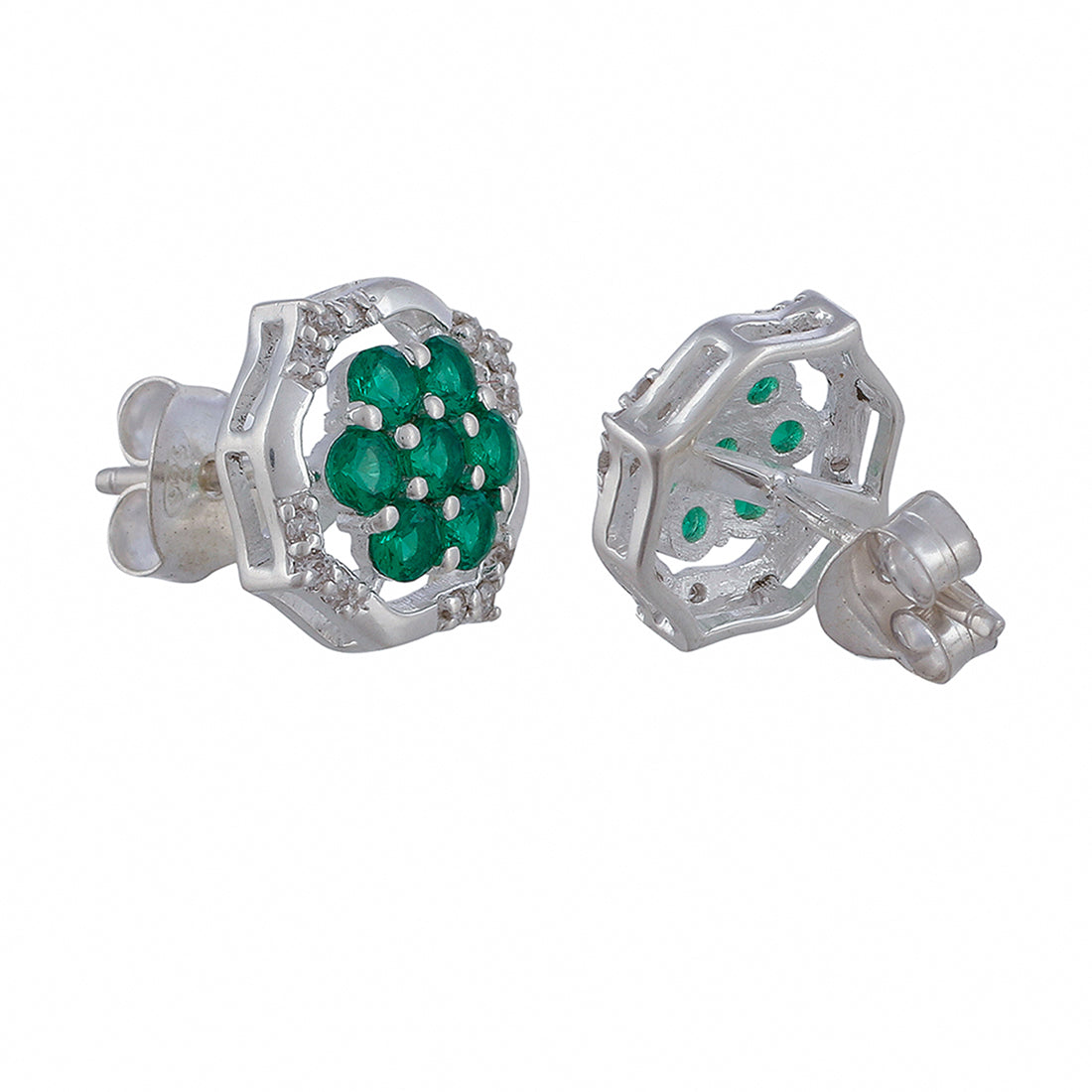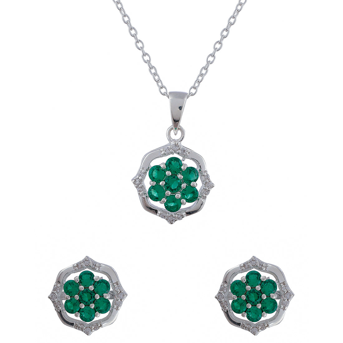 Green Stone Studded 925 Sterling Silver Pendant Set